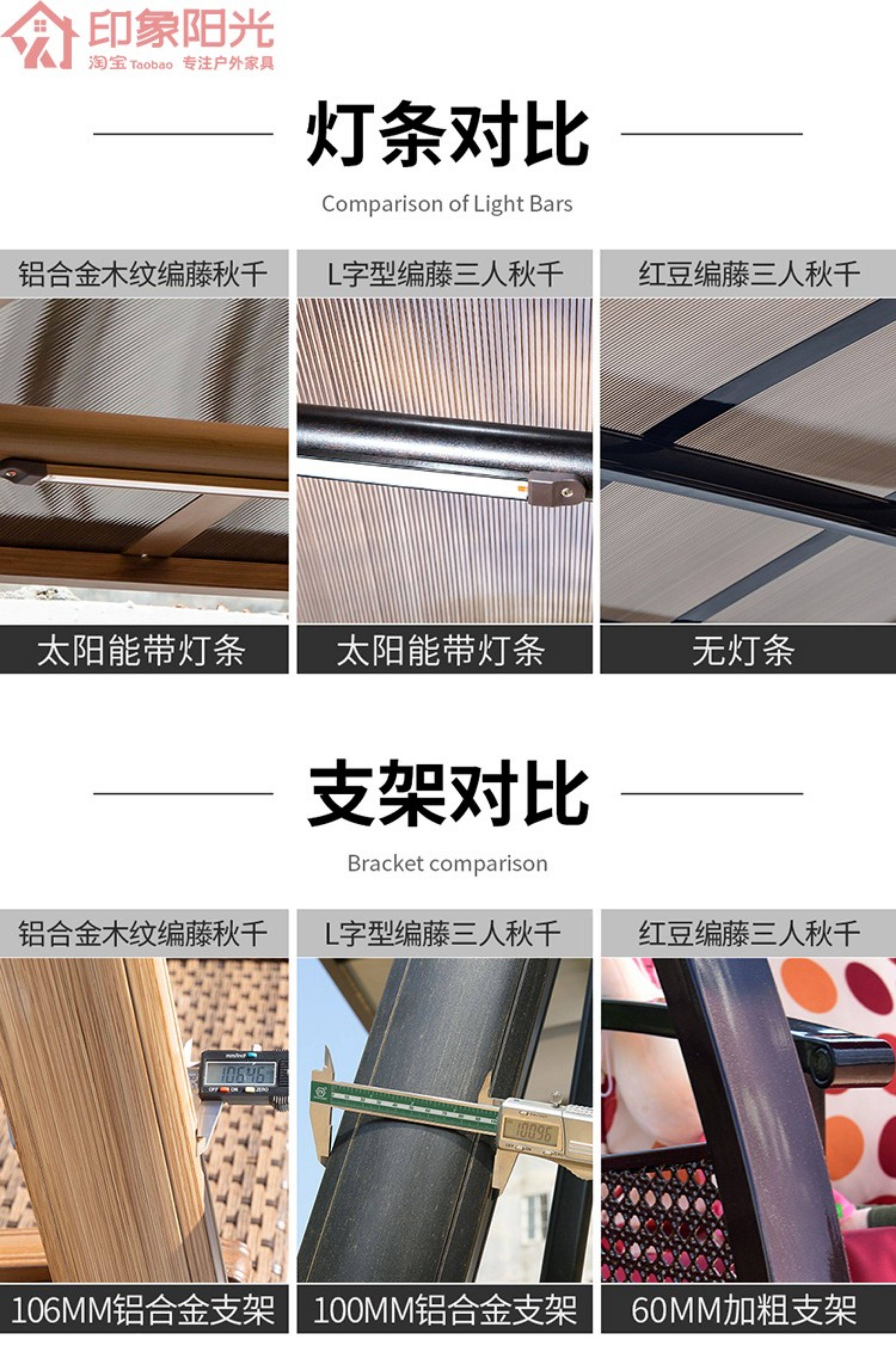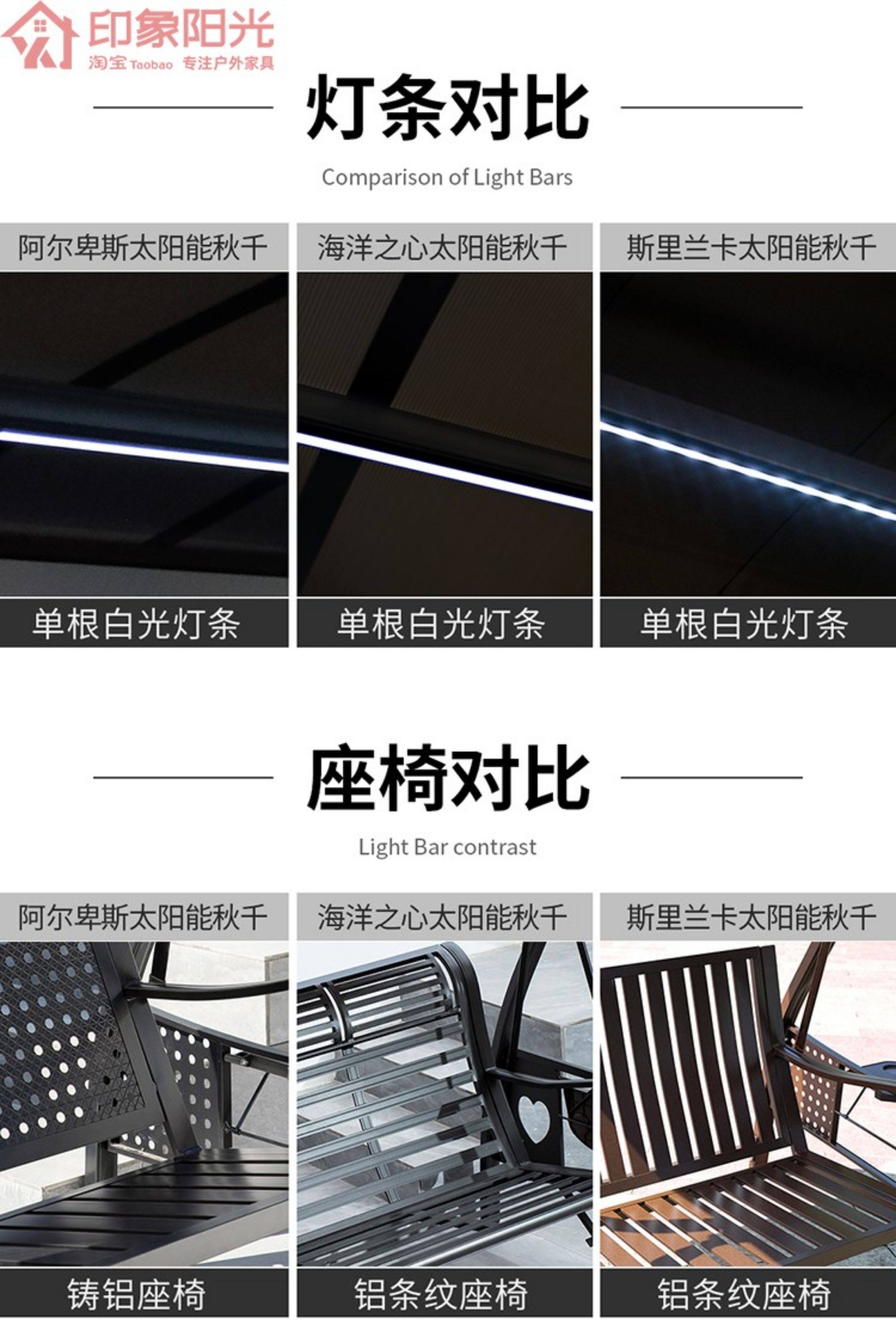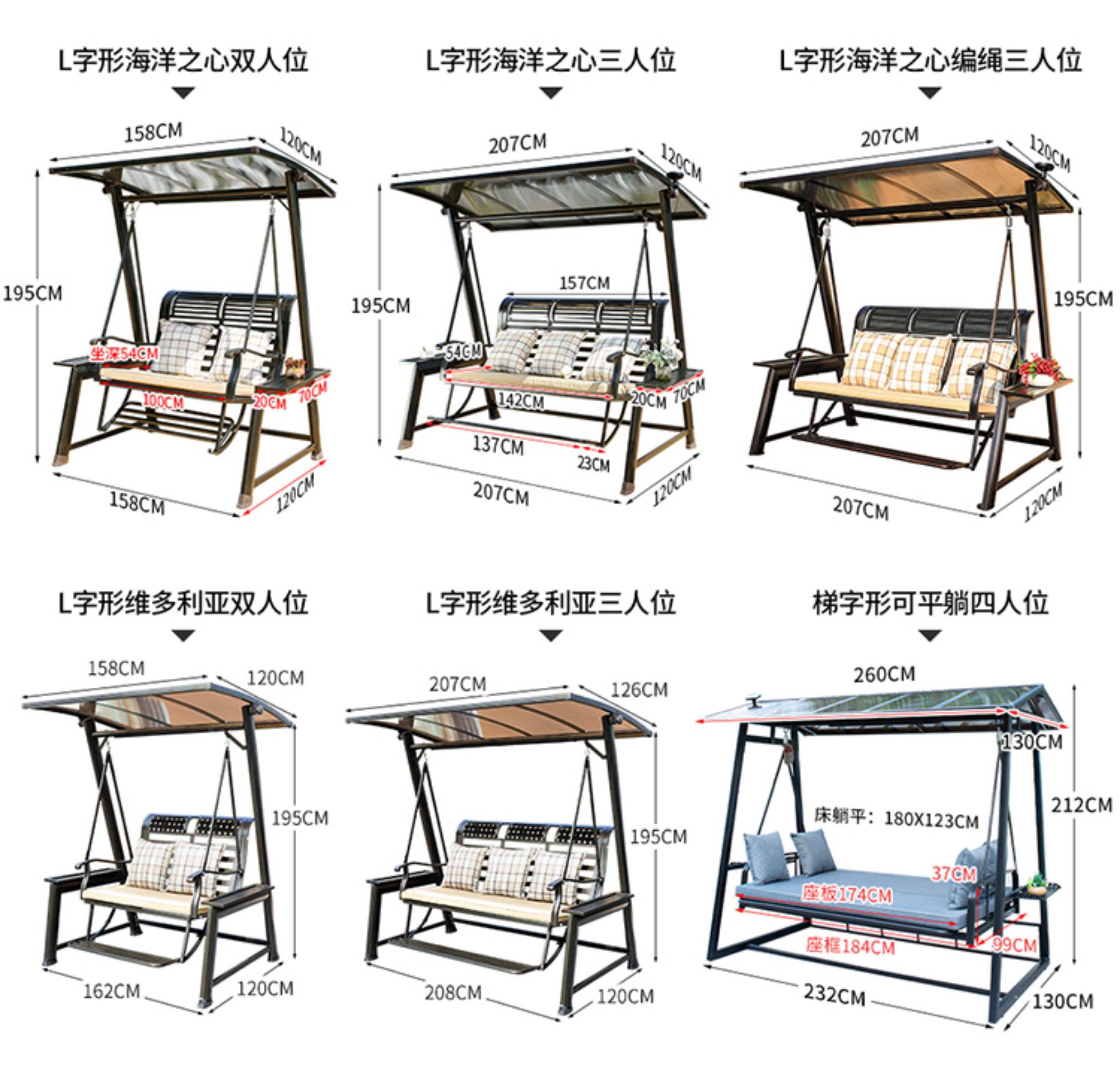 | Model | Alice 3-Seater: Aluminum Canopy & Aluminum Neck Rest & Footrest & Light, Alice 3-Seater: Galvanized Steel & PC Board Top (Dual-Color Light Strip), Alps 2-Seater (Black Gold Sand): Upgraded Cast Aluminum & PC Board Top & Light, Alps 2-Seater (Red Copper): Upgraded Cast Aluminum & PC Board Top & Light, Alps 2-Seater: Aluminum Canopy & Footrest & Light, Alps 2-Seater: PC Board Top & Footrest & Light, Alps 3-Seater (Black Gold Sand): Upgraded Cast Aluminum & PC Board Top & Light, Alps 3-Seater (Champagne): Upgraded Cast Aluminum & PC Board Top & Light, Alps 3-Seater (Red Copper): Upgraded Cast Aluminum & PC Board Top & Light, Alps 3-Seater: Aluminum Canopy & Footrest & Light, Alps 3-Seater: PC Board Top & Footrest & Light, Athena 2-Seater: PC Board Top & Light, Athena 3-Seater: PC Board Top & Light, Bali 3-Seater: Carbon Steel & PC Board Top (With Light), Baoli A-Type 3-Seater: Hydraulic Aluminum Tray & Aluminum Canopy & Light, Baoli A-Type 3-Seater: Hydraulic Aluminum Tray & PC Canopy & Light, Eiffel (Horizontal Pattern) 3-Seater: Aluminum Canopy & Neck Rest Footrest & Light, Eiffel (Plum Blossom Pattern) 3-Seater: Aluminum Canopy & Neck Rest Footrest & Light, Eiffel 3-Seater: Carbon Steel & PC Board Top (No Light), Himalaya 2-Seater: Aluminum Canopy & Neck Rest Footrest & Light, Himalaya 3-Seater: Aluminum Canopy & Neck Rest Footrest & Light, Jakarta 3-Seater: Aluminum Canopy & Neck Rest & Footrest & Light, Jakarta 3-Seater: PC Canopy & Neck Rest & Footrest & Light, L-Type Ocean Heart 2-Seater: Aluminum Canopy & Neck Rest Footrest & Light, L-Type Ocean Heart 2-Seater: PC Board Top & Neck Rest Footrest & Light, L-Type Ocean Heart 3-Seater: Aluminum Canopy & Neck Rest Footrest & Light, L-Type Ocean Heart 3-Seater: PC Board Top & Neck Rest Footrest & Light, L-Type Ocean Heart 3-Seater: PC Board Top & Rattan Neck Rest Footrest & Light, Liuyuxuan A-Type 3-Seater: Aluminum Board Top & Aluminum Neck Rest & Footrest & Light, Liuyuxuan A-Type 3-Seater: PC Board Top & Aluminum Neck Rest & Footrest & Light, Melia 2-Seater: PC Board Top & Neck Rest & Footrest & Light, Melia 3-Seater: PC Board Top & Neck Rest & Footrest & Light, Ocean Heart 2-Seater (Black Gold Sand): Aluminum Canopy & Aluminum Neck Rest & Footrest & Light, Ocean Heart 2-Seater (Black Gold Sand): PC Board Top & Aluminum Neck Rest & Footrest & Light, Ocean Heart 3-Seater (Black Gold Sand): Aluminum Canopy & Aluminum Neck Rest & Footrest & Light, Ocean Heart 3-Seater (Black Gold Sand): PC Board Top & Aluminum Neck Rest & Footrest & Light, Ocean Heart 3-Seater (Red Copper): PC Board Top & Aluminum Neck Rest & Footrest & Light, Ocean Heart 3-Seater: Aluminum Canopy & Aluminum Neck Rest & Footrest & Light, Ocean Heart 3-Seater: PC Canopy & Aluminum Neck Rest & Footrest & Light, Panama 3-Seater: Carbon Steel & PC Board Top (No Light), Plum Blossom Eiffel 2-Seater: PC Board Top & Aluminum Neck Rest & Footrest & Light, Plum Blossom Eiffel 3-Seater: PC Board Top & Aluminum Neck Rest & Footrest & Light, Sit & Recline A-Type 4-Seater: PC Board Top & Light, Sit & Recline Alice 4-Seater: Aluminum Canopy & Light, Sit & Recline Herringbone 4-Seater: PC Board Top & Light, Sri Lanka 2-Seater: PC Board Top & Footrest & Light, Sri Lanka 2-Seater: PC Board Top & Light, Sri Lanka 3-Seater: PC Board Top & Footrest & Light, Sri Lanka 3-Seater: PC Board Top & Light, Thickened Aluminum Alloy L-Type Aluminum Mesh 3-Seater: PC Board Top, Aluminum Mesh Backrest, Footrest & Light, Thickened Aluminum Alloy L-Type Victoria 2-Seater: Aluminum Canopy, Neck Rest, Footrest & Light, Thickened Aluminum Alloy L-Type Victoria 3-Seater: Aluminum Canopy, Neck Rest, Footrest & Light, Vienna 2-Seater: Galvanized Steel & PC Board Top & Light, Vienna 2-Seater: Galvanized Steel & PC Board Top (No Light), Vienna 3-Seater: Galvanized Steel & PC Board Top & Light, Vienna 3-Seater: Galvanized Steel & PC Board Top (No Light) |