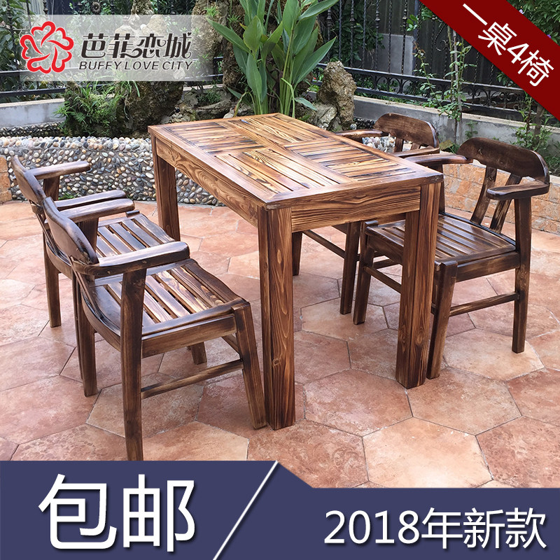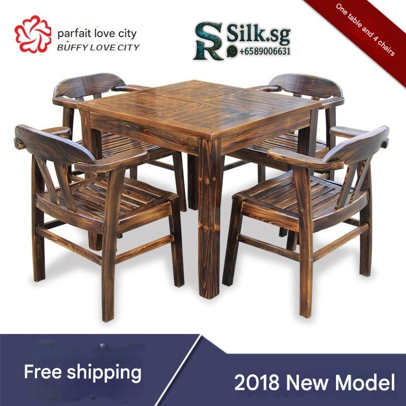 Buffylove City – Carbonized Anti – Corrosion Wood Outdoor Dining Set f