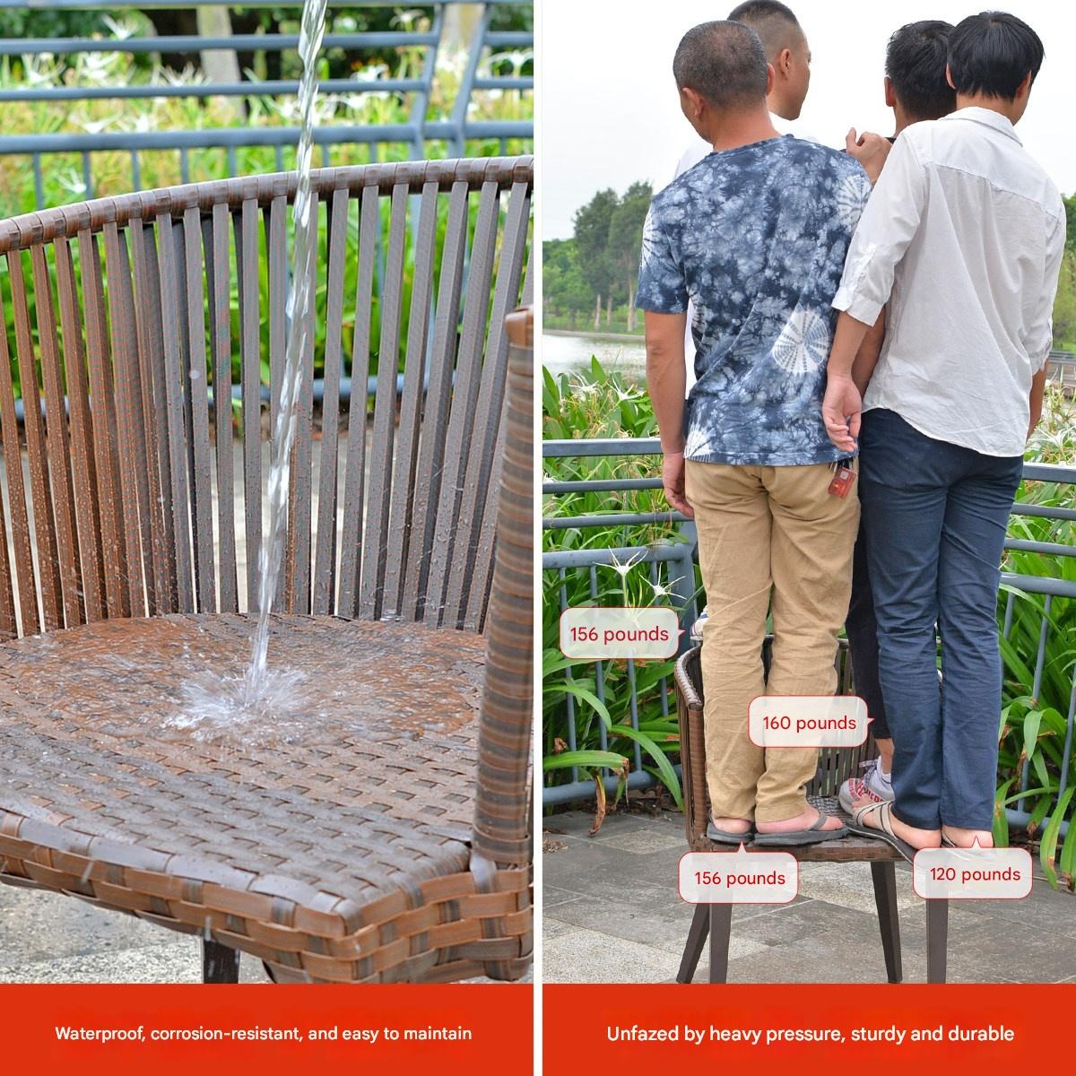 Enjoy effortless outdoor living with this durable wicker patio furniture set. Its waterproof and sun-resistant design ensures lasting beauty with minimal upkeep, perfect for garden dinners or balcony relaxation. Create your ideal outdoor oasis with timeless, minimalist style.