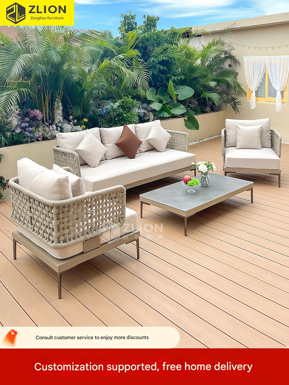 Zonglianpai – Waterproof Rattan Outdoor Sofa Set, Nordic Style Balcony