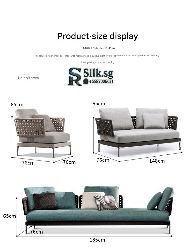 | Category | Concubine Three-Seater<Stainless Steel Legs+Waterproof Fabric>, Courtyard Lounge Set<1+1+2+3+Long & Round Tables>, Customizable<Custom Colors & Sizes>, Double Seat Double Armrest<Stainless Steel Legs+Waterproof Fabric>, Double Seat No Armrest<Stainless Steel Legs+Waterproof Fabric>, Double Seat Single Armrest<Stainless Steel Legs+Waterproof Fabric>, Footstool<73*70*38cm>, Long Footstool<90*60*38cm>, Promotional Balcony Set<1+1+Round Table>, Promotional Lounge Set A<1+1+3+Long Table>, Round Coffee Table<50*55cm>, Set Three-Seater<Stainless Steel Legs+Waterproof Fabric>, Single Seat<Stainless Steel Legs+Waterproof Fabric>, Slate Long Coffee Table<140*70*25cm>, Slate Side Table<73*70*25>, Slate Square Coffee Table<85*85*25cm>, Standard Three-Seater<Stainless Steel Legs+Waterproof Fabric> |