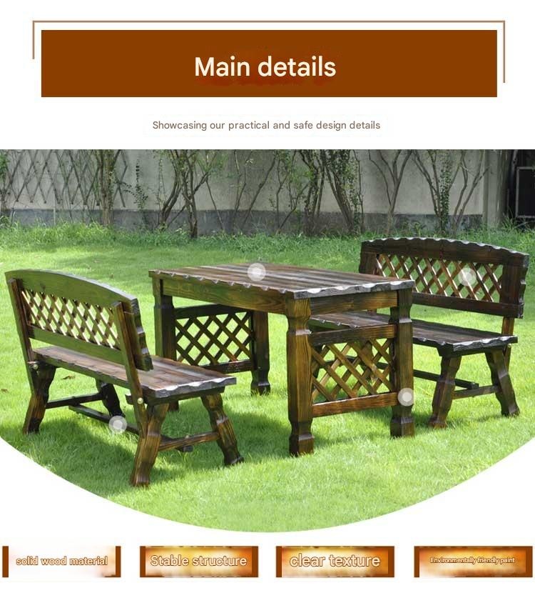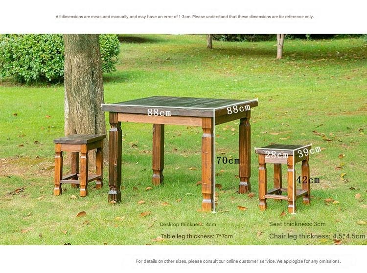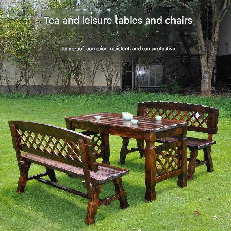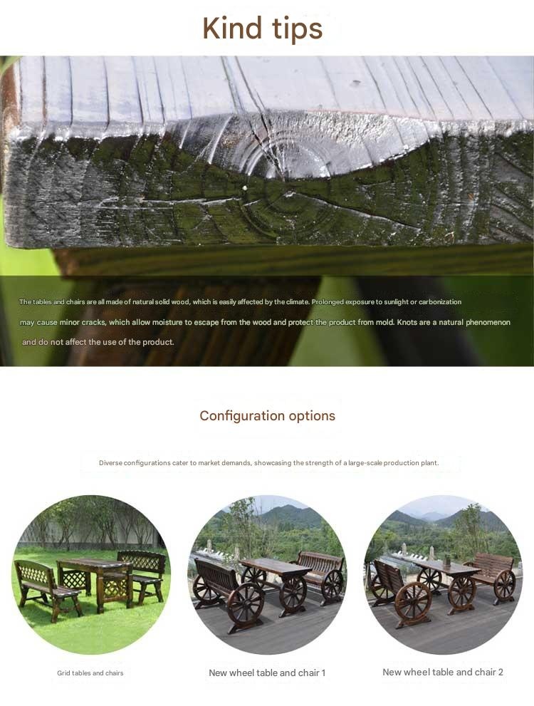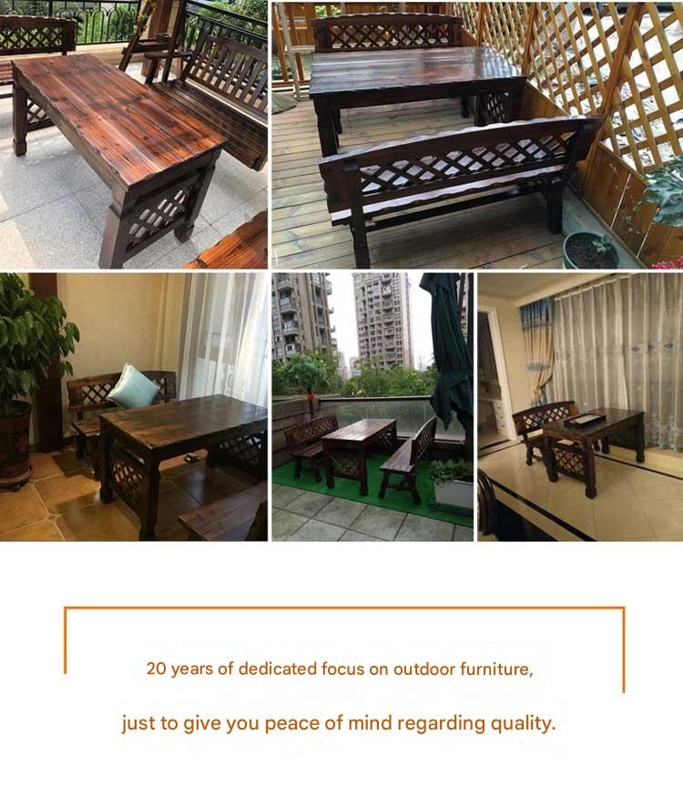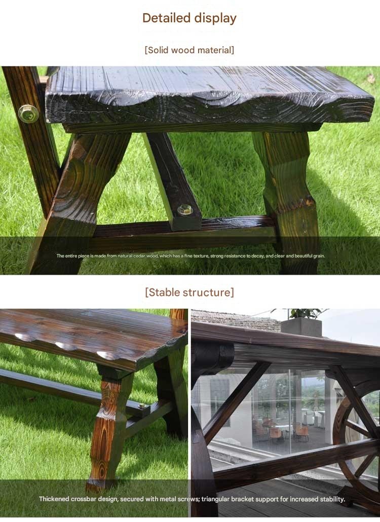 Enjoy durable, solid wood construction with a rustic, carbonized finish that resists weather and wear. This versatile three-piece set is perfect for creating a cozy spot on your balcony or courtyard. Its unique retro wheels add charm and easy mobility, inviting you to relax and unwind in style.
