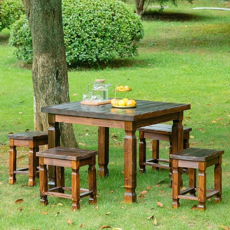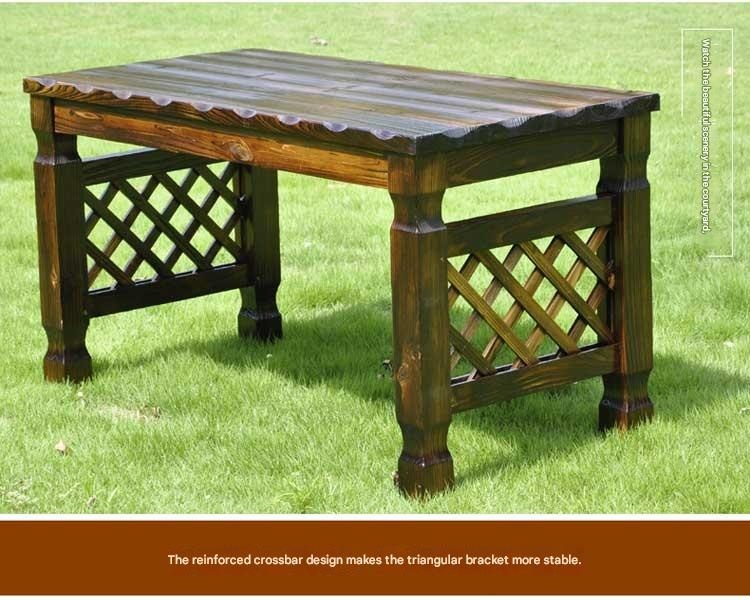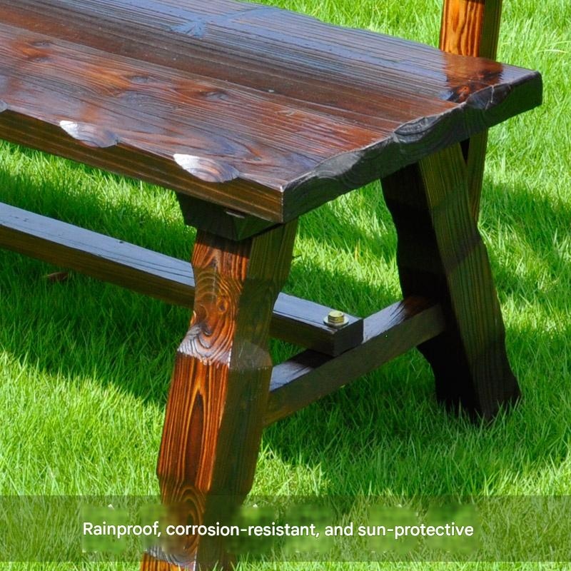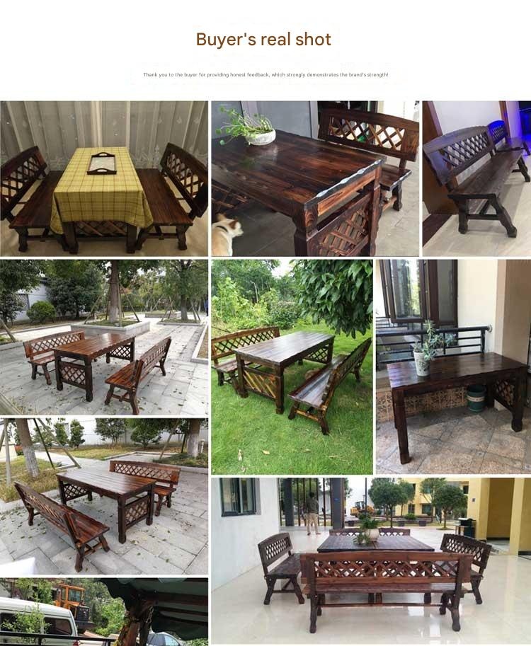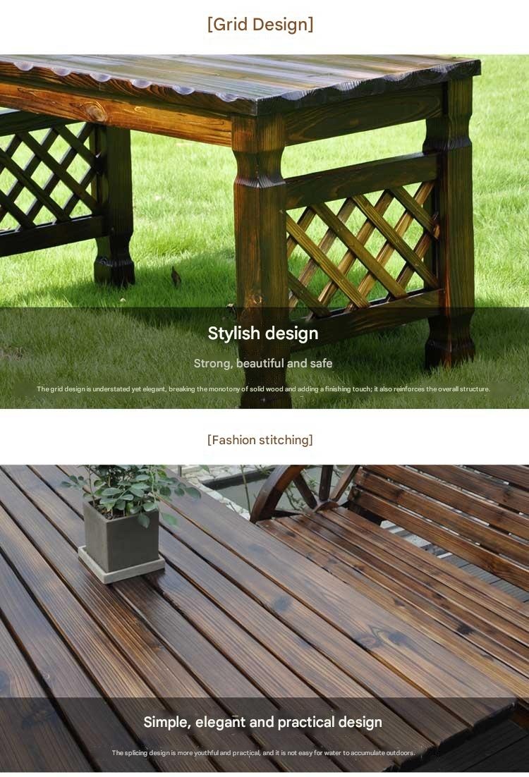 Enjoy durable, solid wood construction with a rustic, carbonized finish that resists weather and wear. This versatile three-piece set is perfect for creating a cozy spot on your balcony or courtyard. Its unique retro wheels add charm and easy mobility, inviting you to relax and unwind in style.