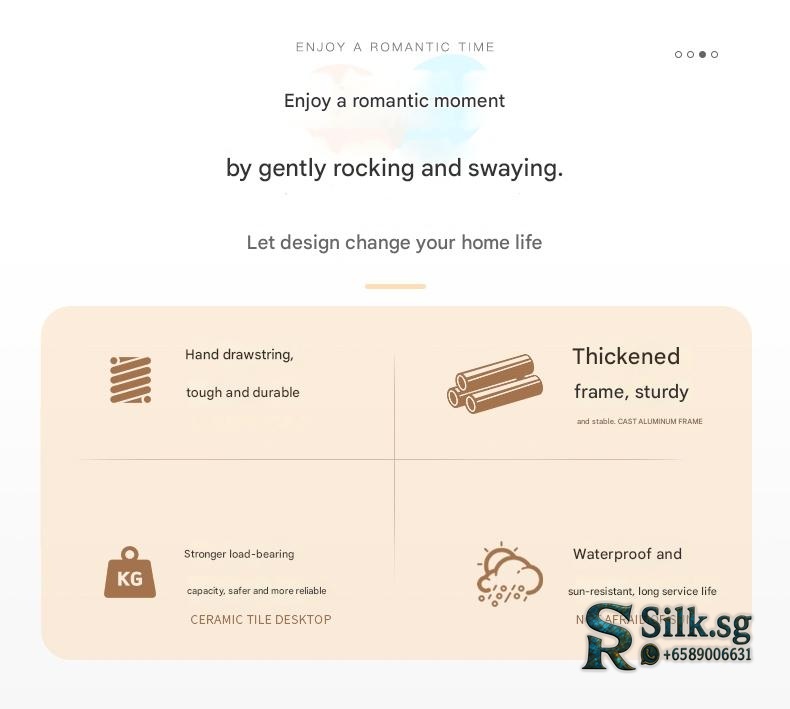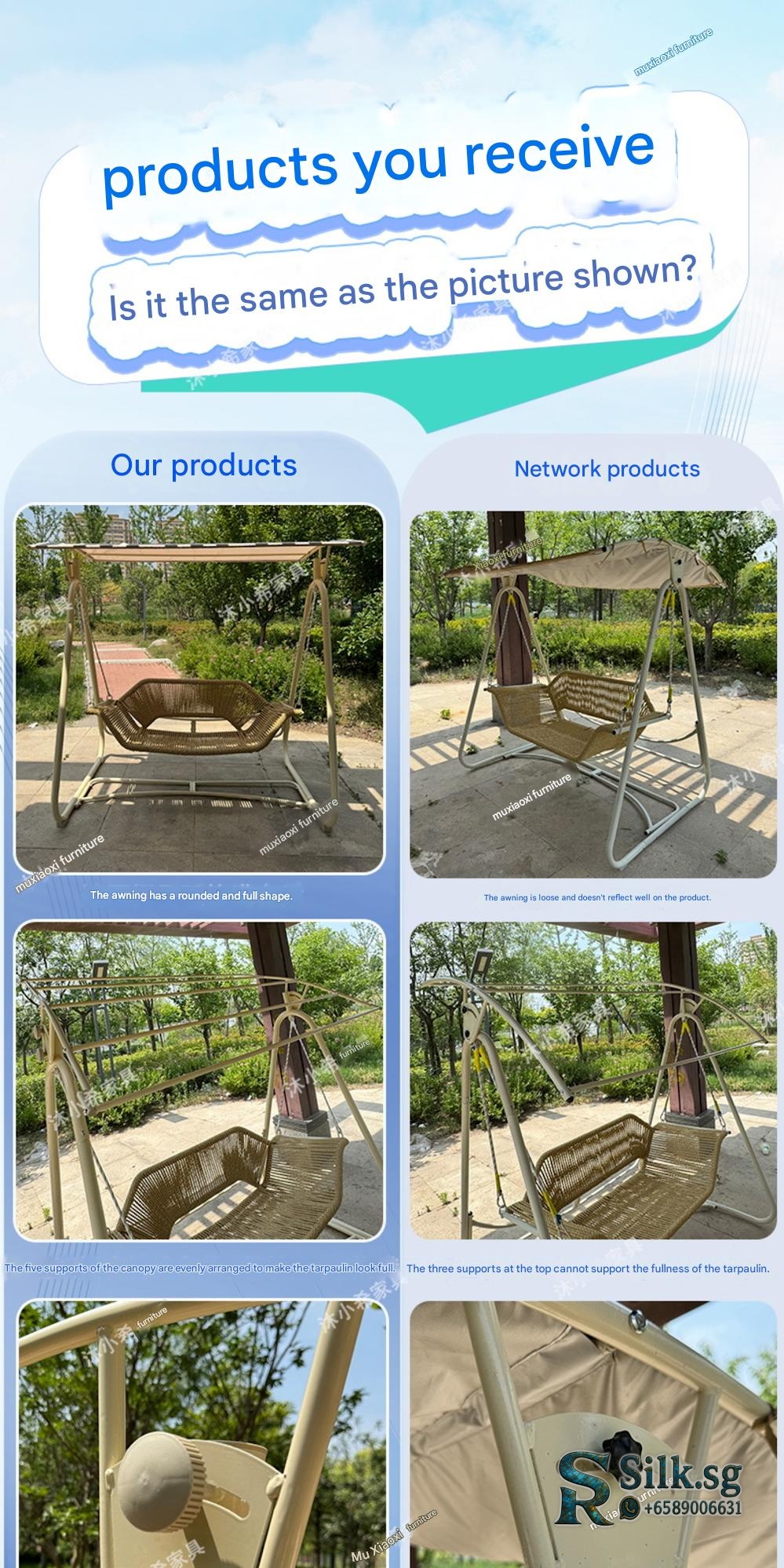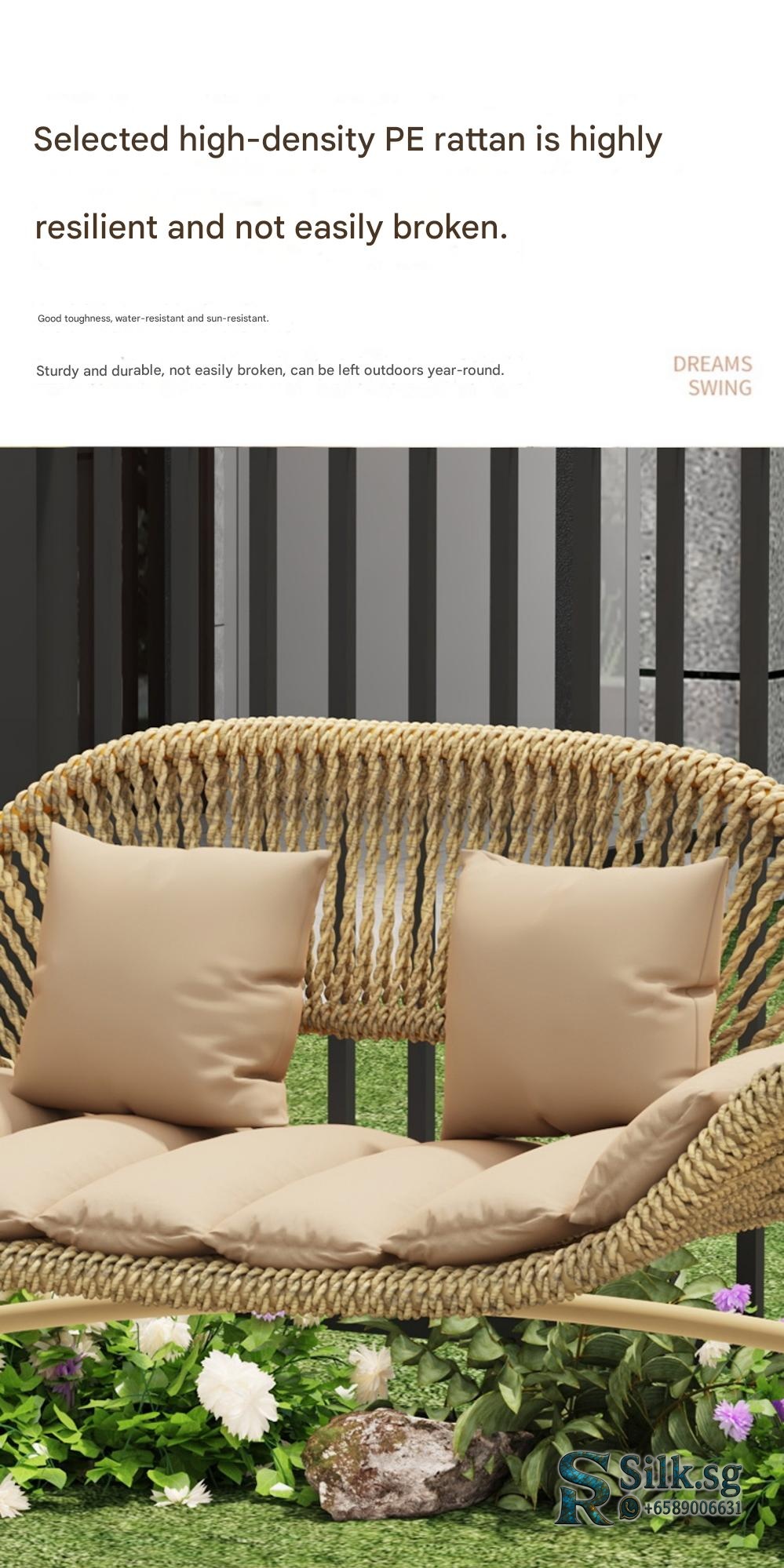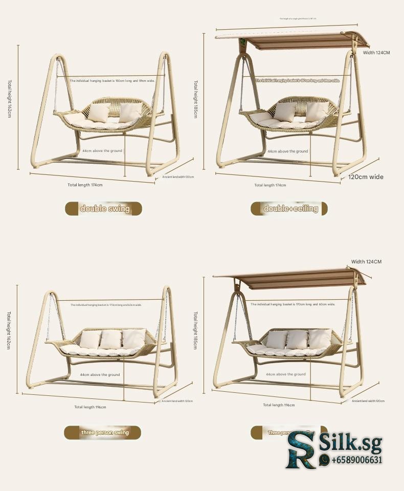 | Type | Bird's Nest Swing Beige PE Rattan Rope Upgraded Ladder Frame Cushion, Bird's Nest Swing Mocca Brown PE Rattan Rope Upgraded Ladder Frame Cushion, Bird's Nest Swing Reed Green PE Rattan Rope Upgraded Ladder Frame Cushion, Bird's Nest Swing Sea Salt Blue PE Rattan Rope Upgraded Ladder Frame Cushion, Bird's Nest Swing Smoke Blue PE Rattan Rope Upgraded Ladder Frame Cushion, Jujube Double Swing Mocca Blue PE Rope Thick Frame Cushion, Jujube Double Swing Mocca Brown PE Rope Thick Frame Cushion, Jujube Double Swing Mocca Gray PE Rope Thick Frame Cushion, Jujube Double Swing Mocca Green PE Rope Thick Frame Cushion, Jujube Double Swing Natural Wood PE Rattan Rope Thick Frame Cushion, Jujube Double Swing Natural Wood PE Rattan Rope Thick Frame No Cushion, Jujube Double Swing Sunshade Mocca Blue PE Rope Thick Frame Cushion, Jujube Double Swing Sunshade Mocca Brown PE Rope Thick Frame Cushion, Jujube Double Swing Sunshade Mocca Gray PE Rope Thick Frame Cushion, Jujube Double Swing Sunshade Mocca Green PE Rope Thick Frame Cushion, Jujube Double Swing Sunshade Natural Wood PE Rattan Rope Thick Frame Cushion, Jujube Double Swing Sunshade Natural Wood PE Rattan Rope Thick Frame No Cushion, Jujube Single Swing Mocca Blue PE Rope Thick Frame Cushion, Jujube Single Swing Mocca Brown PE Rope Frame Cushion, Jujube Single Swing Mocca Gray PE Rope Thick Frame Cushion, Jujube Single Swing Mocca Green PE Rope Thick Frame Cushion, Jujube Single Swing Natural Wood PE Rattan Rope Thick Frame Cushion, Jujube Triple Swing Mocca Blue PE Rope Thick Frame Cushion, Jujube Triple Swing Mocca Brown PE Rope Thick Frame Cushion, Jujube Triple Swing Mocca Gray PE Rope Thick Frame Cushion, Jujube Triple Swing Natural Wood PE Rattan Rope Thick Frame Cushion, Jujube Triple Swing Sunshade Mocca Blue PE Rope Thick Frame Cushion, Jujube Triple Swing Sunshade Mocca Brown PE Rope Thick Frame Cushion, Jujube Triple Swing Sunshade Mocca Gray PE Rope Thick Frame Cushion, Jujube Triple Swing Sunshade Natural Wood PE Rattan Rope Thick Frame Cushion, PE Rattan Double Swing Ice Coffee Thick Cushion, PE Rattan Single Swing Ice Coffee Thick Cushion, PE Rattan Triple Swing Ice Coffee Thick Cushion, Wicker Maldives Double Swing Sunshade Thick Cushion |
