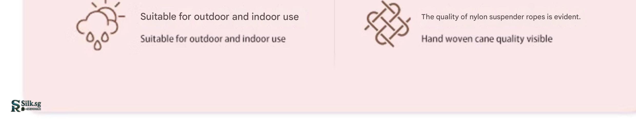 | Color | Double Hanging Chair – Beige & Dark Wood, Double Hanging Chair – Dark Brown & Light Wood, Double Hanging Chair – Light Gray & Light Wood, Double Hanging Chair – White & Light Wood, Double Hanging Chair Plus – Beige & Light Wood, Double Hanging Chair Plus – Khaki & Light Wood, Double Hanging Chair Plus – Light Gray & Light Wood, Hammock – Beige, Hammock – Khaki, Hammock – Light Gray, Large Bowl Hammock, Single Hanging Chair – Beige & Dark Wood, Single Hanging Chair – Dark Brown & Light Wood, Single Hanging Chair – Light Gray & Light Wood, Single Hanging Chair – White & Light Wood, Single Hanging Chair Plus – Beige & Dark Wood, Single Hanging Chair Plus – Beige & Light Wood, Single Hanging Chair Plus – Khaki & Light Wood, Single Hanging Chair Plus – Light Gray & Light Wood |