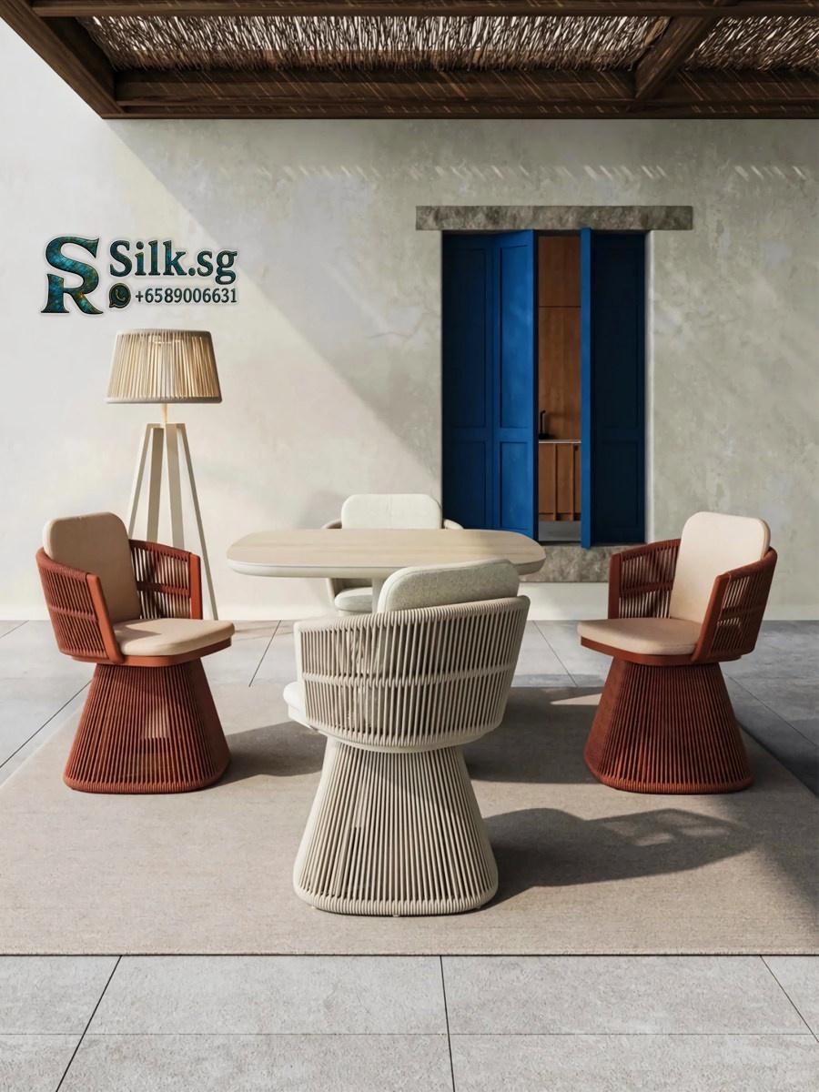| Color | Red Rattan Weave Chair, Red Rope Weave Chair, Round Slate Dining Table, Round Teak Dining Table, Square Slate Dining Table, Square Teak Dining Table, White Rattan Weave Chair, White Rope Weave Chair |