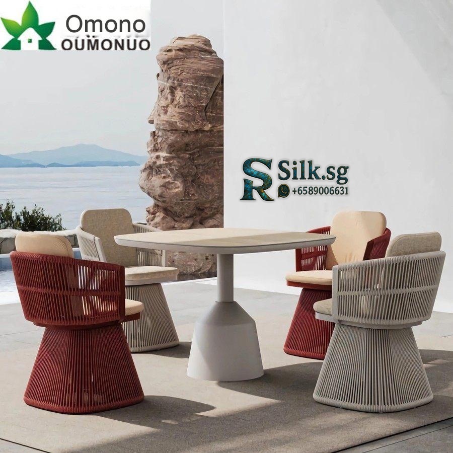 Transform your outdoor space with this stylish and durable aluminum furniture set. Its unique rotatable chair offers effortless versatility, while the rustic artistic design adds timeless charm. Perfect for creating a cozy patio or elegant hotel terrace retreat where relaxation meets style.