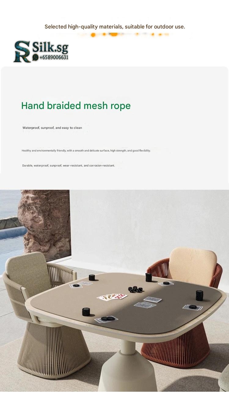 | Color | Red Rope Chair, Red Wicker Chair, Round Rock Plate Table, Round Teak Table, Square Rock Plate Table, Square Teak Table, White Rope Chair, White Wicker Chair |