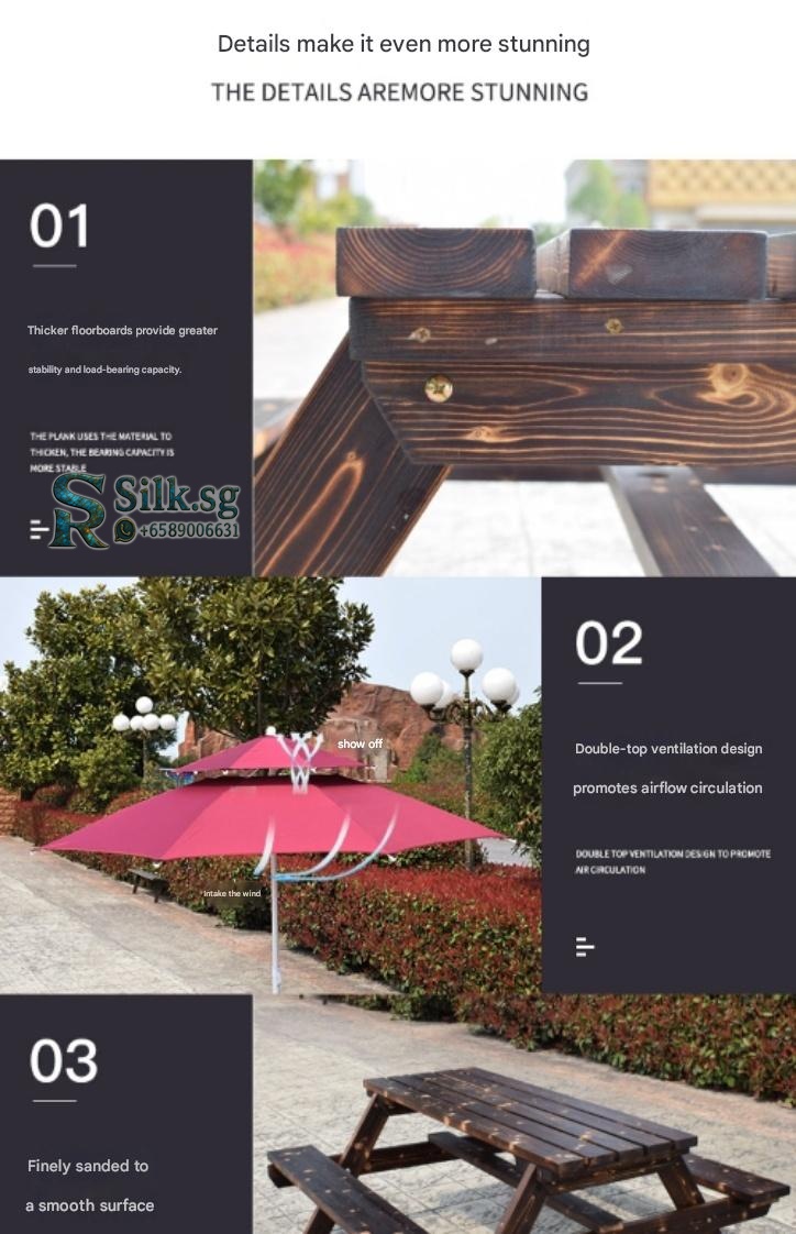 | Option | Thickened Anti-Corrosion 120*150*70 + Umbrella with Umbrella Base Carbonized, Thickened Anti-Corrosion 120*150*70 + Umbrella with Umbrella Base Natural Wood, Thickened Anti-Corrosion 130*150*70 + Umbrella with Umbrella Base Carbonized, Thickened Anti-Corrosion 130*150*70 + Umbrella with Umbrella Base Natural Wood, Thickened Anti-Corrosion 150*150*70 + Umbrella with Umbrella Base Carbonized, Thickened Anti-Corrosion 150*150*70 + Umbrella with Umbrella Base Natural Wood, Thickened Anti-Corrosion 160*150*70 + Umbrella with Umbrella Base Carbonized, Thickened Anti-Corrosion 160*150*70 + Umbrella with Umbrella Base Natural Wood, Thickened Anti-Corrosion 180*150*70 + Umbrella with Umbrella Base Carbonized, Thickened Anti-Corrosion 180*150*70 + Umbrella with Umbrella Base Natural Wood, Thickened Anti-Corrosion 200*150*70 + Umbrella with Umbrella Base Natural Wood, Thickened Anti-Corrosion 2m*150*70 + Umbrella with Umbrella Base Carbonized, Thickened Anti-Corrosion Upgrade 120*55*70 Carbonized Color Single Table and Chair, Thickened Anti-Corrosion Upgrade 120*55*70 Natural Wood Color Single Table and Chair, Thickened Anti-Corrosion Upgrade 130*55*70 Carbonized Color Single Table and Chair, Thickened Anti-Corrosion Upgrade 130*55*70 Natural Wood Color Single Table and Chair, Thickened Anti-Corrosion Upgrade 150*55*70 Carbonized Color Single Table and Chair, Thickened Anti-Corrosion Upgrade 150*55*70 Natural Wood Color Single Table and Chair, Thickened Anti-Corrosion Upgrade 160*55*70 Carbonized Color Single Table and Chair, Thickened Anti-Corrosion Upgrade 160*55*70 Natural Wood Color Single Table and Chair, Thickened Anti-Corrosion Upgrade 180*55*70 Carbonized Color Single Table and Chair, Thickened Anti-Corrosion Upgrade 180*55*70 Natural Wood Color Single Table and Chair, Thickened Anti-Corrosion Upgrade 2m*55*70 Carbonized Color Single Table and Chair, Thickened Anti-Corrosion Upgrade 2m*55*70 Natural Wood Color Single Table and Chair, Thickened Double-Top Umbrella + Base |