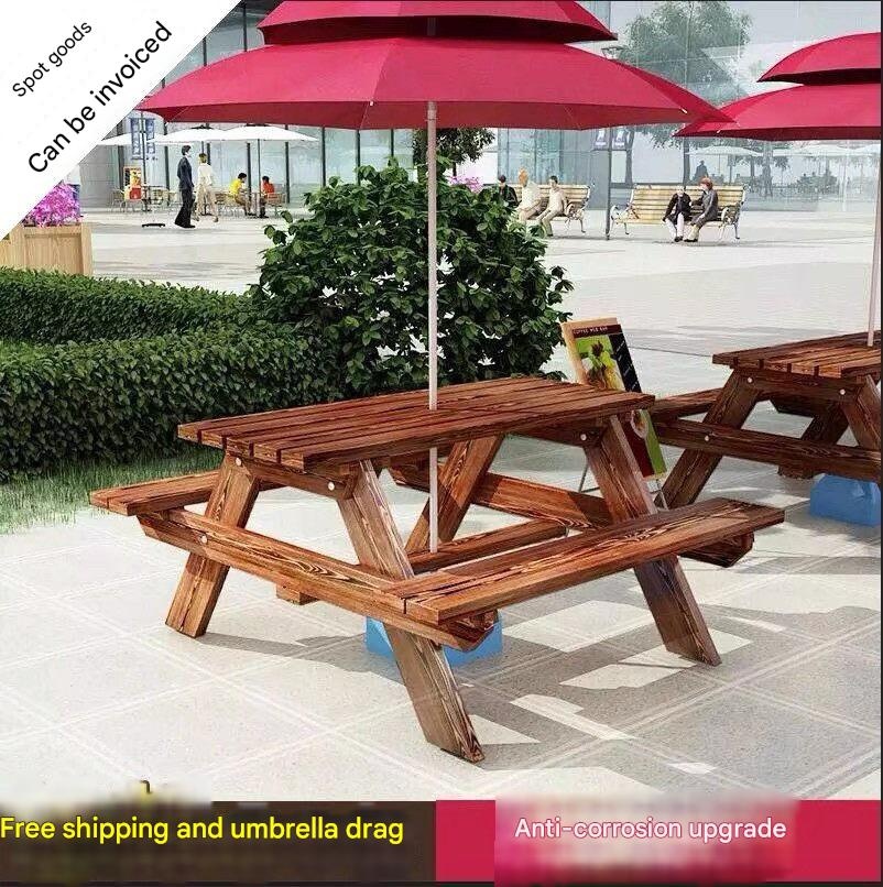 Premium Outdoor Table and Chair Set for Milk Tea Coffee Shop, Courtyard, Outdoor Cafeteria, Integrated Dining Table and Chairs with Umbrella, Park Solid Wood Anti-Corrosion for modern lifestyles. Designed for comfort, durability, and everyday use. {‘