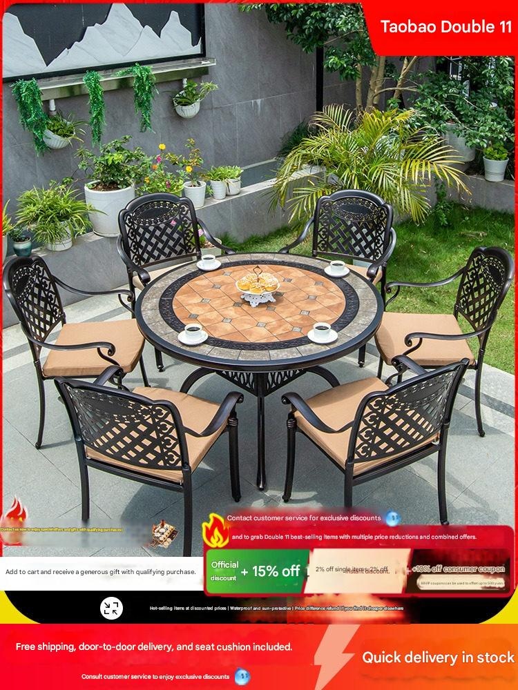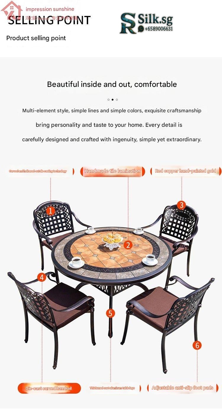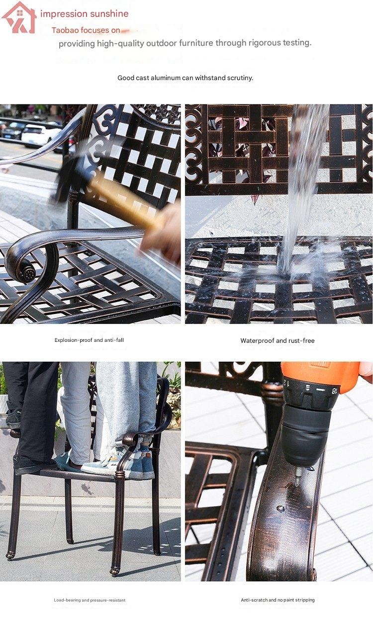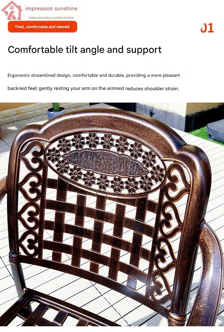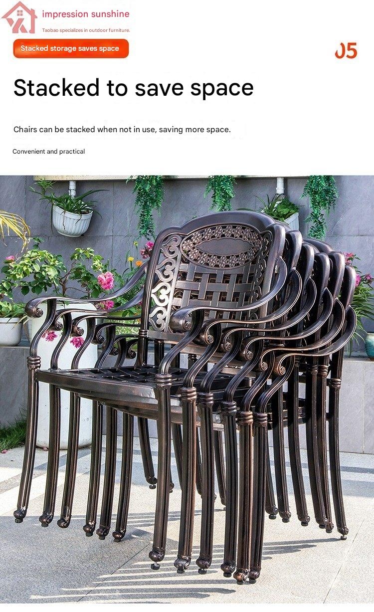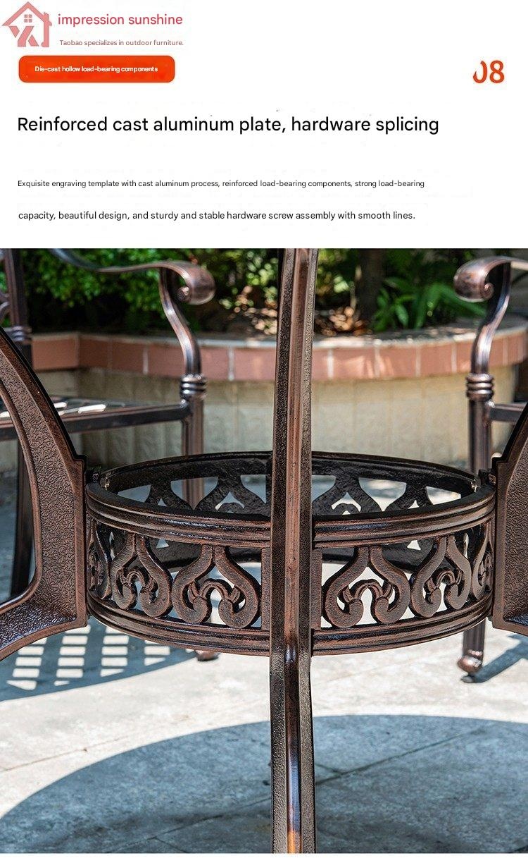 Create a welcoming outdoor space with our elegant cast aluminum round table and chairs set, perfect for courtyard gardens or rooftops. Its durable design and stylish European style bring comfort and charm to your outdoor gatherings. Transform your patio into a cozy retreat today.