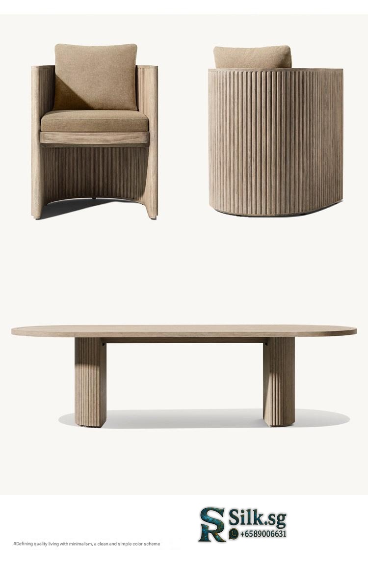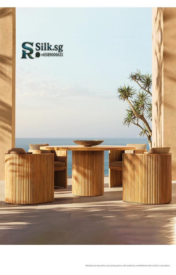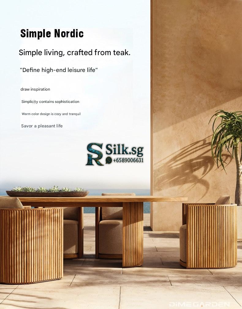 Enjoy a durable, solid wood outdoor table and chairs set that withstands sun and rain with timeless Nordic style. Perfect for creating a welcoming restaurant patio or a beautiful villa garden. Its movable design lets you easily host gatherings anywhere. Elevate your open-air dining experience today.