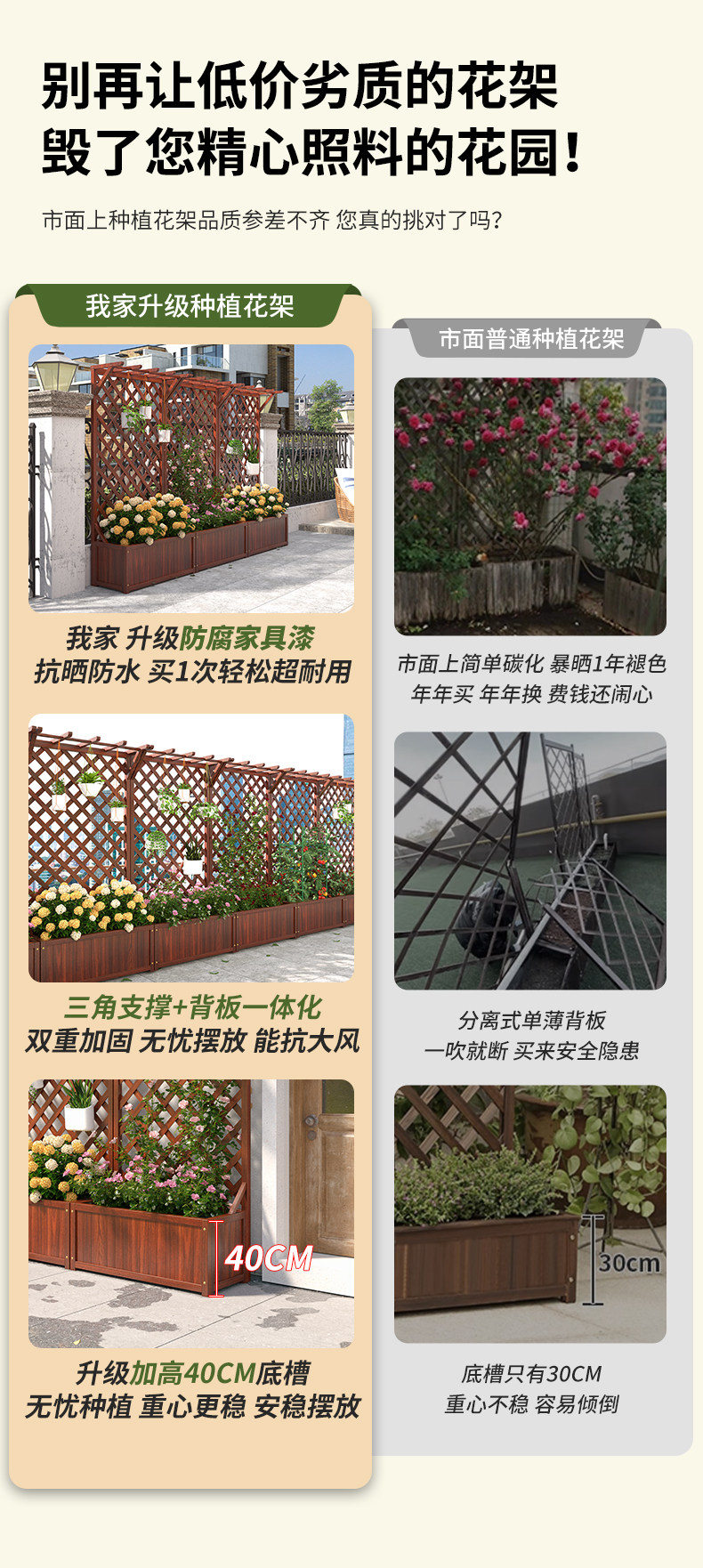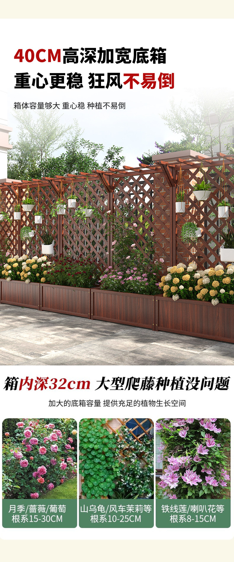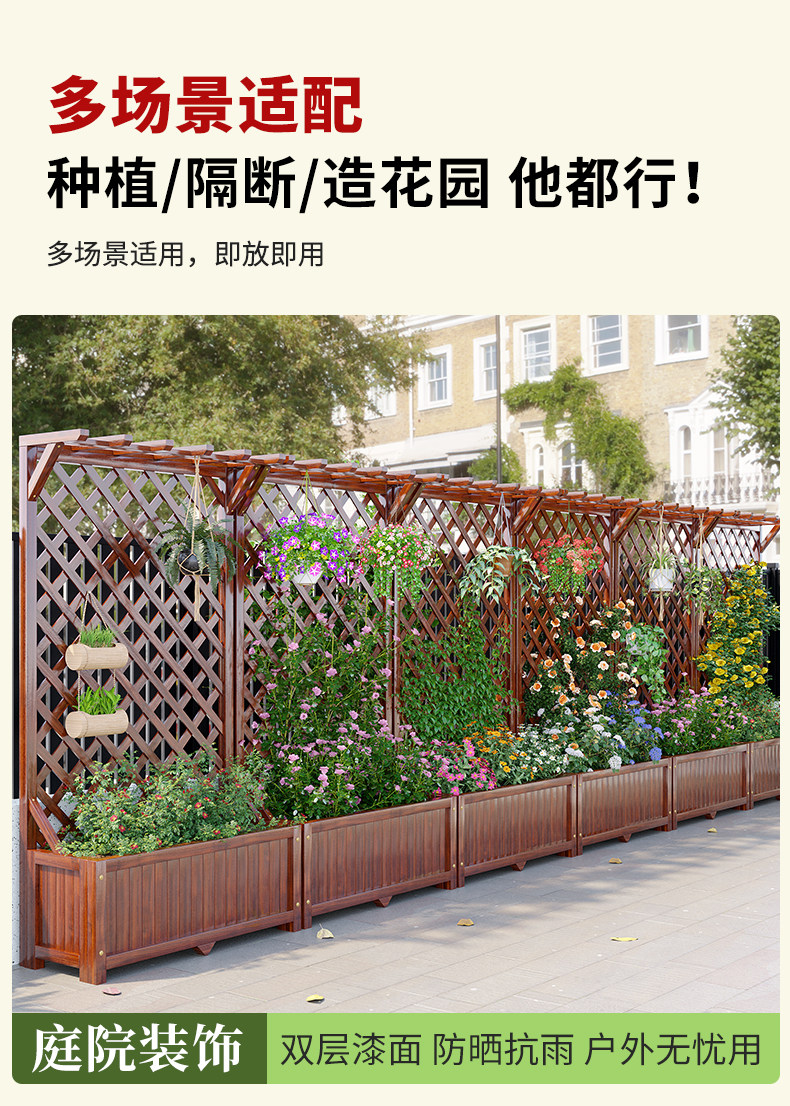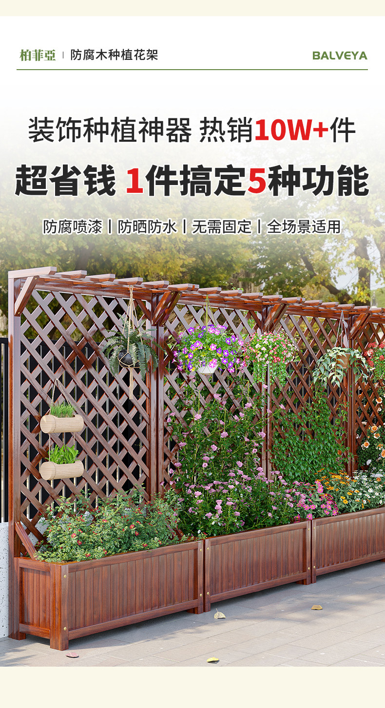 Premium Outdoor Flower Stand Balcony Climbing Frame Courtyard Flower Wall Frame Anti-Corrosion Wood Fence Railing Outdoor Partition Planter Box Planting Box for modern lifestyles. Designed for comfort, durability, and everyday use. {‘Style’: ‘America