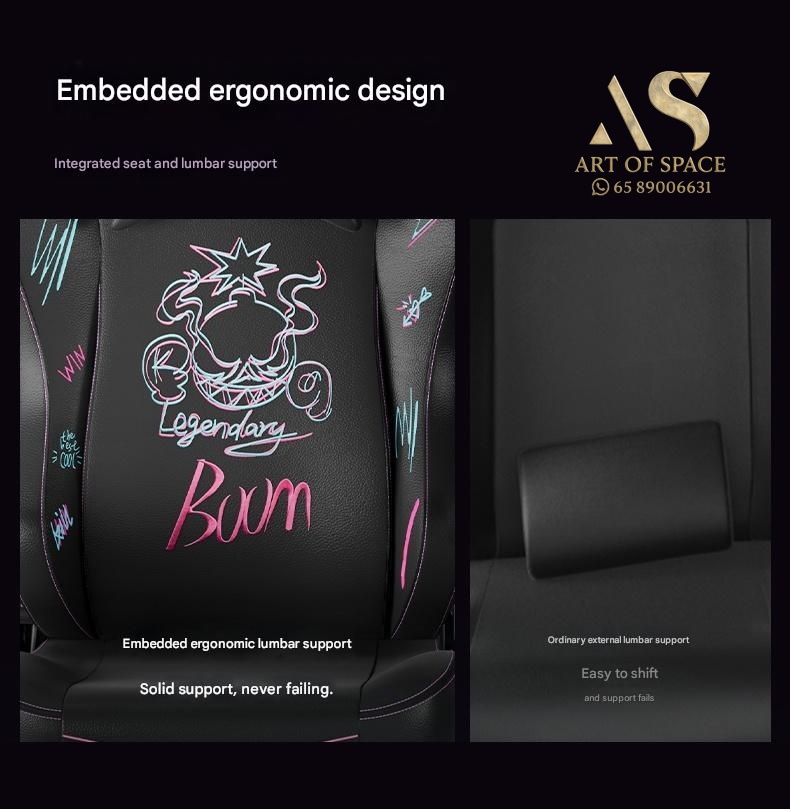 Experience lasting comfort with this ergonomic gaming chair, featuring adjustable lumbar support and premium leather. Perfect for long gaming sessions or workdays, its unique splashed ink embroidery adds a touch of luxury to your space. Discover your new favorite seat.