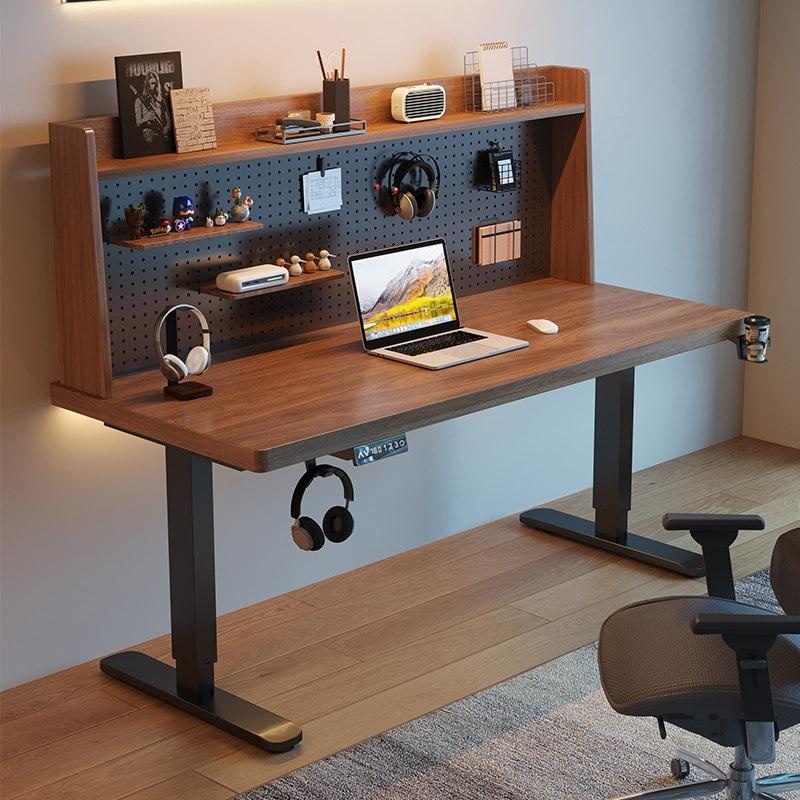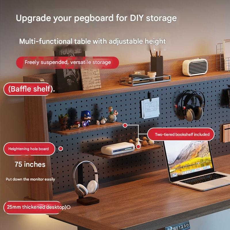 Yazhishi – Solid Wood Electric Height Adjustable Desk with Pegboard &
