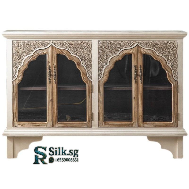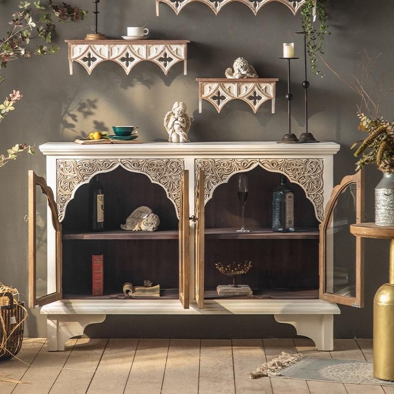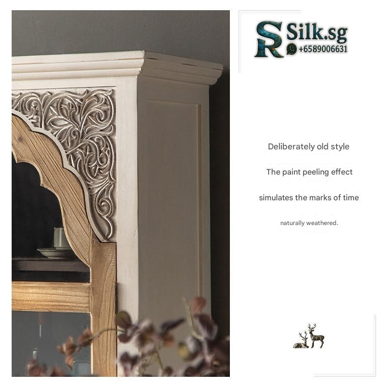This elegant American country wine cabinet offers generous glass-door storage and beautiful carved details. Perfect for entryways or dining rooms, its solid wood construction ensures lasting charm. Discover a timeless piece that organizes your space with classic style.