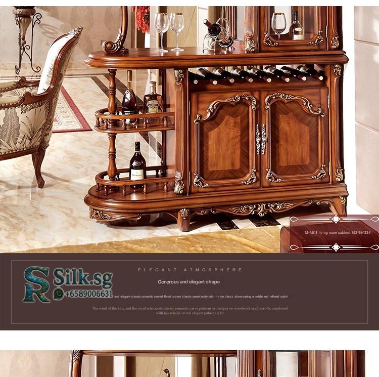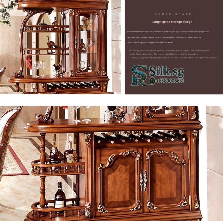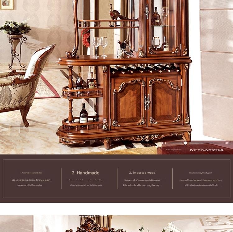Retro European Palace Style Solid Wood Wine Cabinet – Living Room Stor