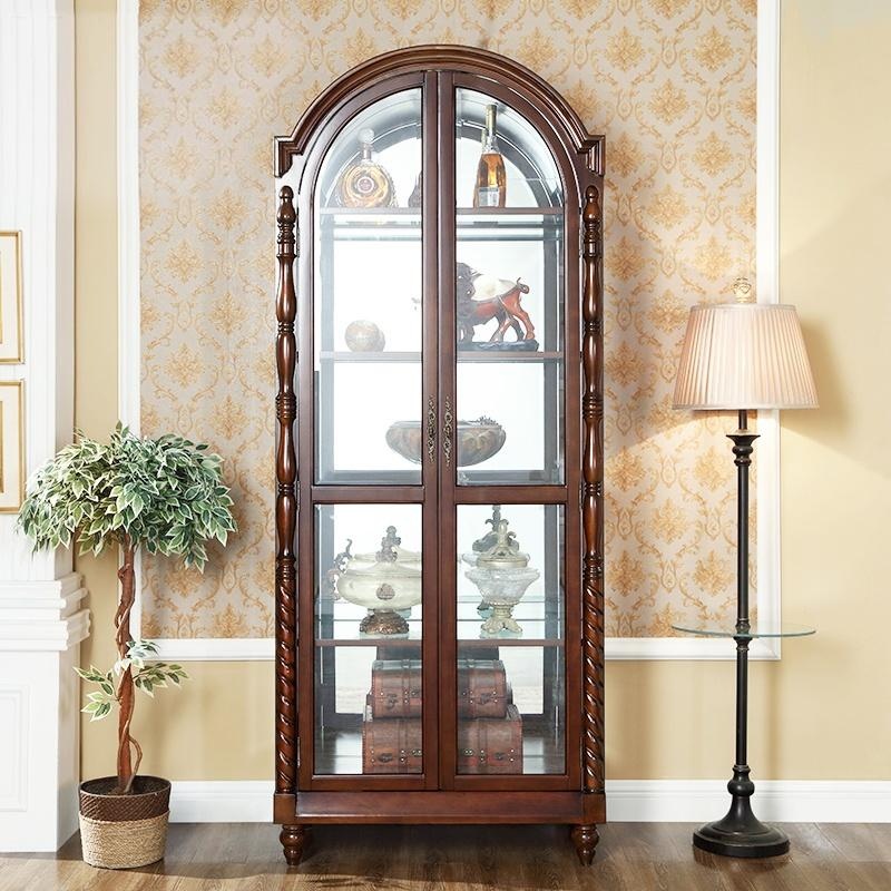 No Brand – American Style Solid Wood Wine Cabinet with Glass Doors and