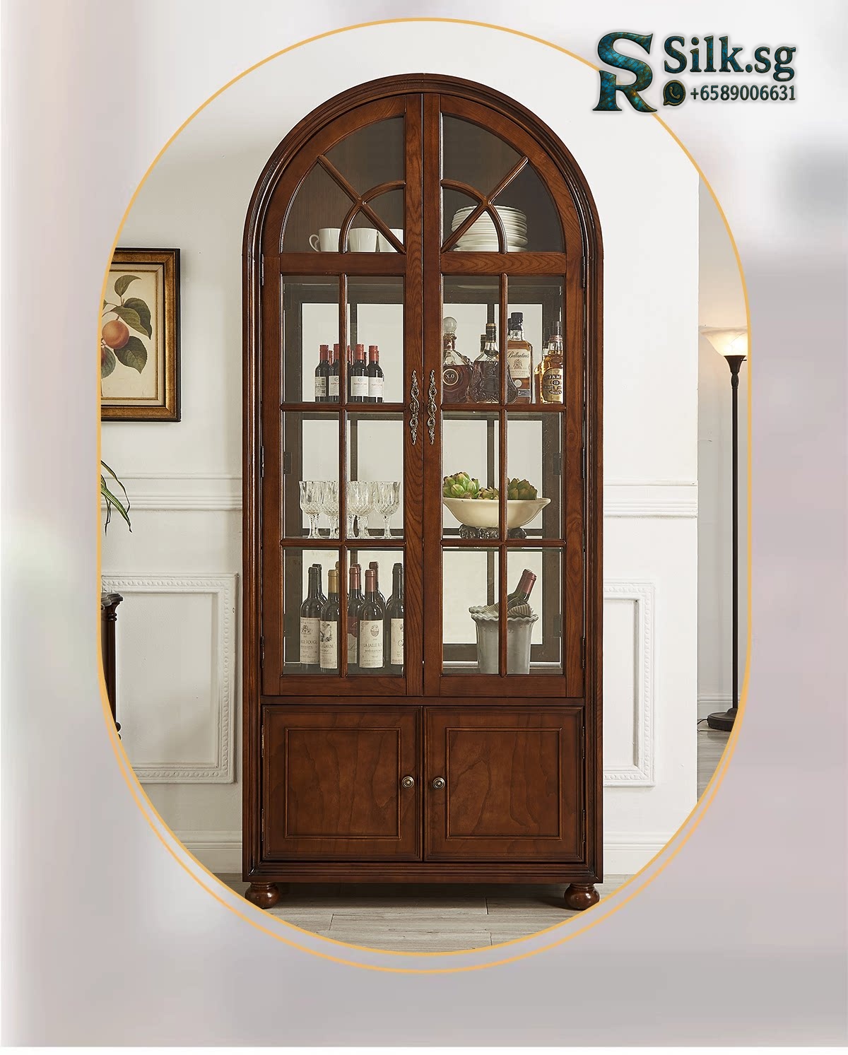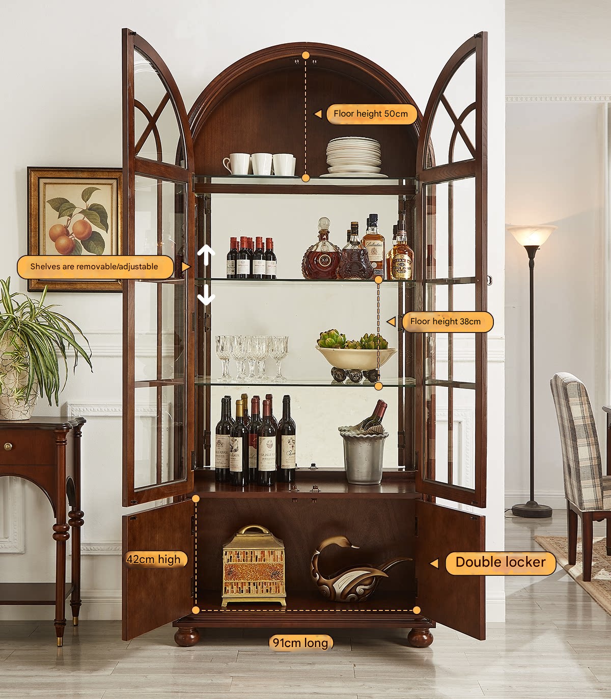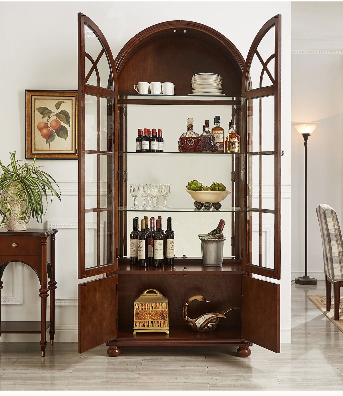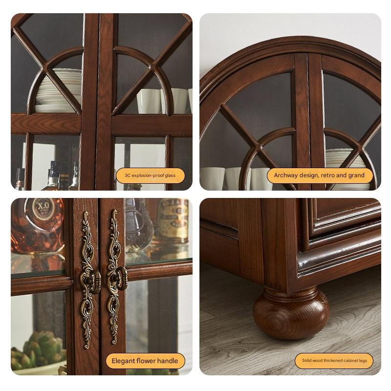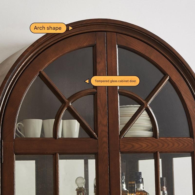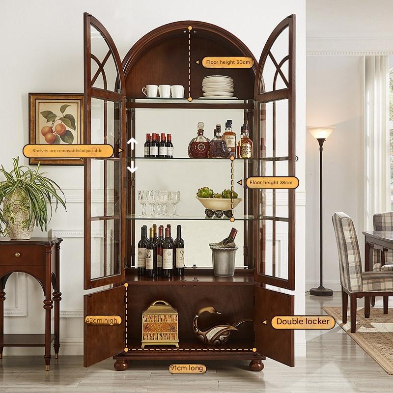 Premium American Style Solid Wood Wine Cabinet European Retro Living Room Arc-Shaped Glass Wine Display Cabinet with Drawer Storage and Decorative Cabinet for modern lifestyles. Designed for comfort, durability, and everyday use. {‘Style’: ‘European’
