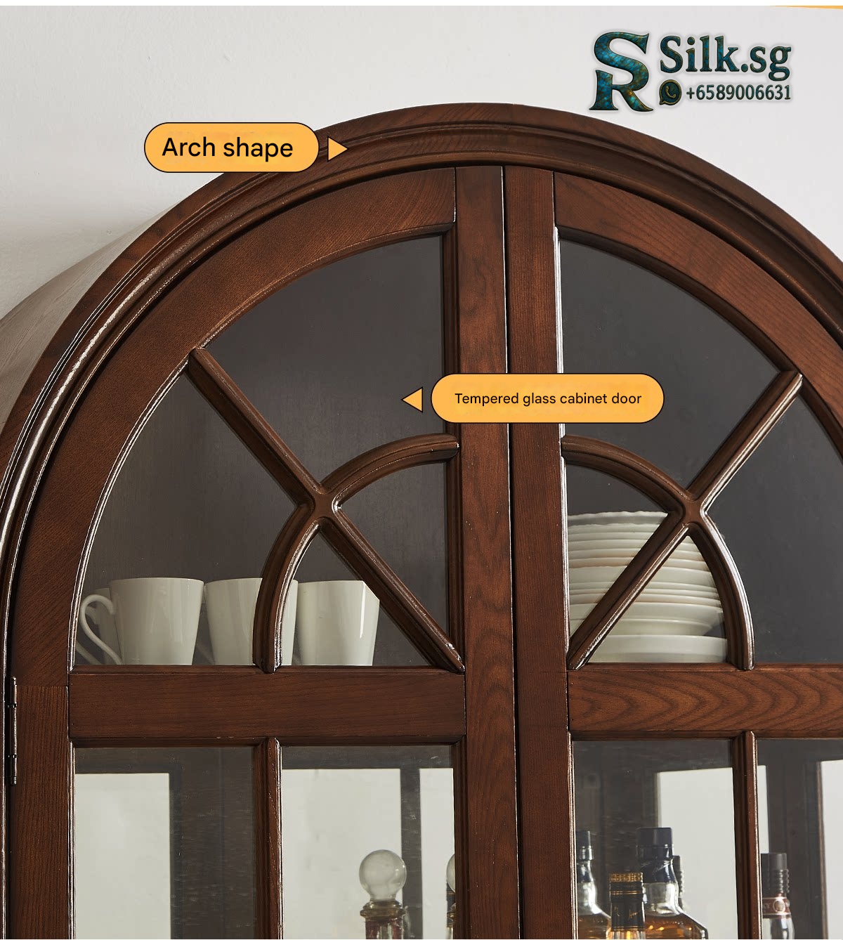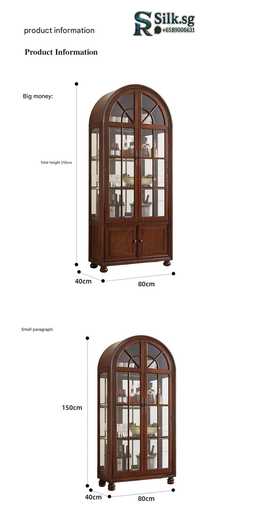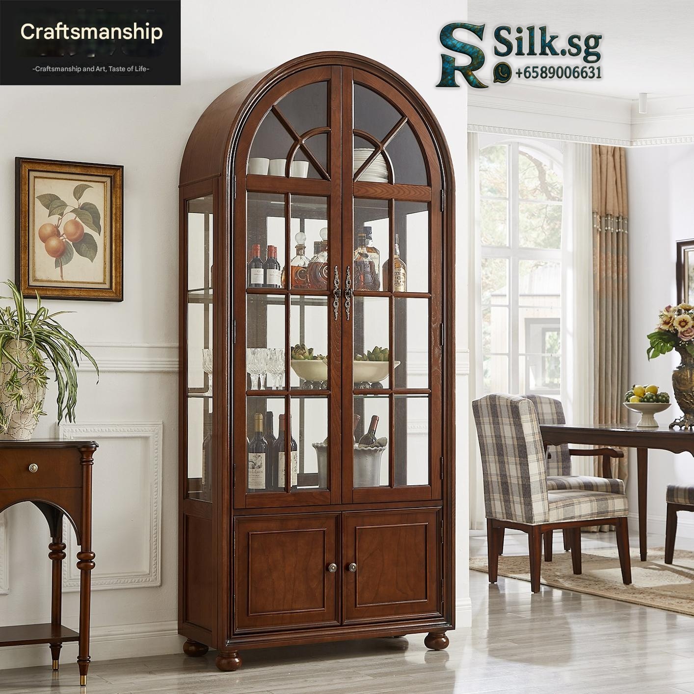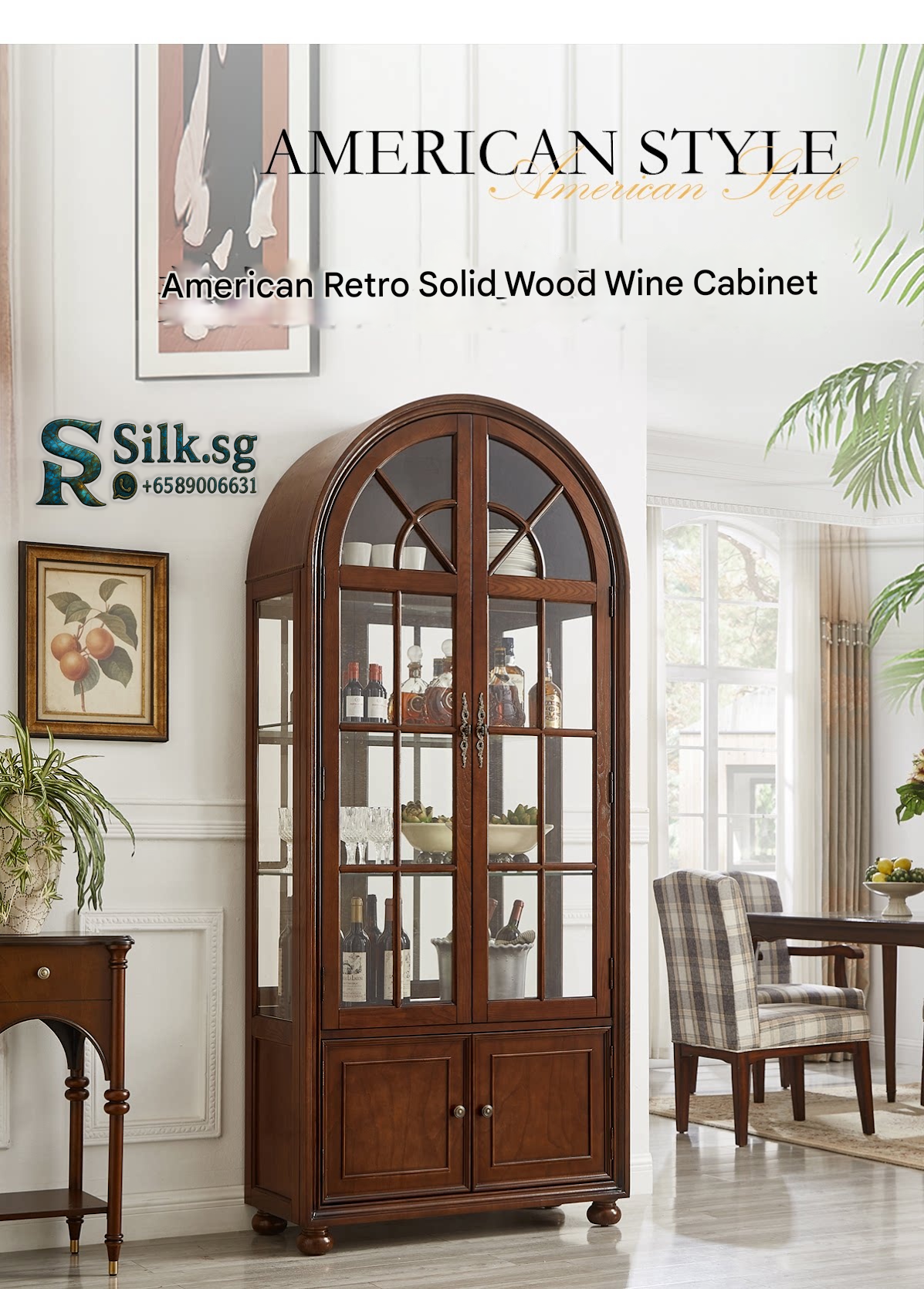 Premium American Style Solid Wood Wine Cabinet European Retro Living Room Arc-Shaped Glass Wine Display Cabinet with Drawer Storage and Decorative Cabinet for modern lifestyles. Designed for comfort, durability, and everyday use. {‘Style’: ‘European’