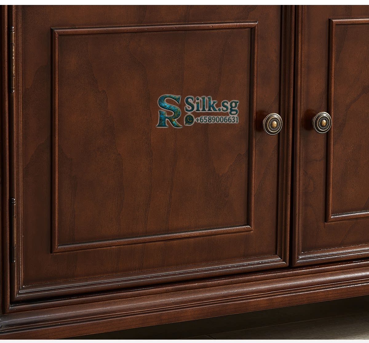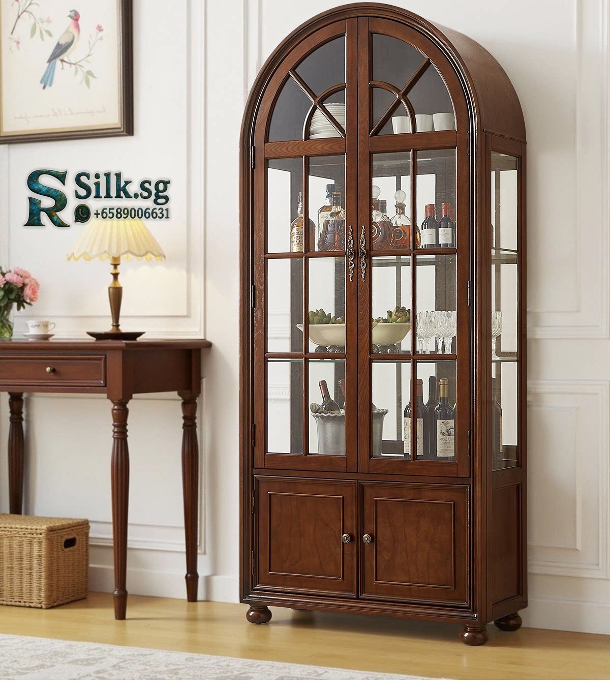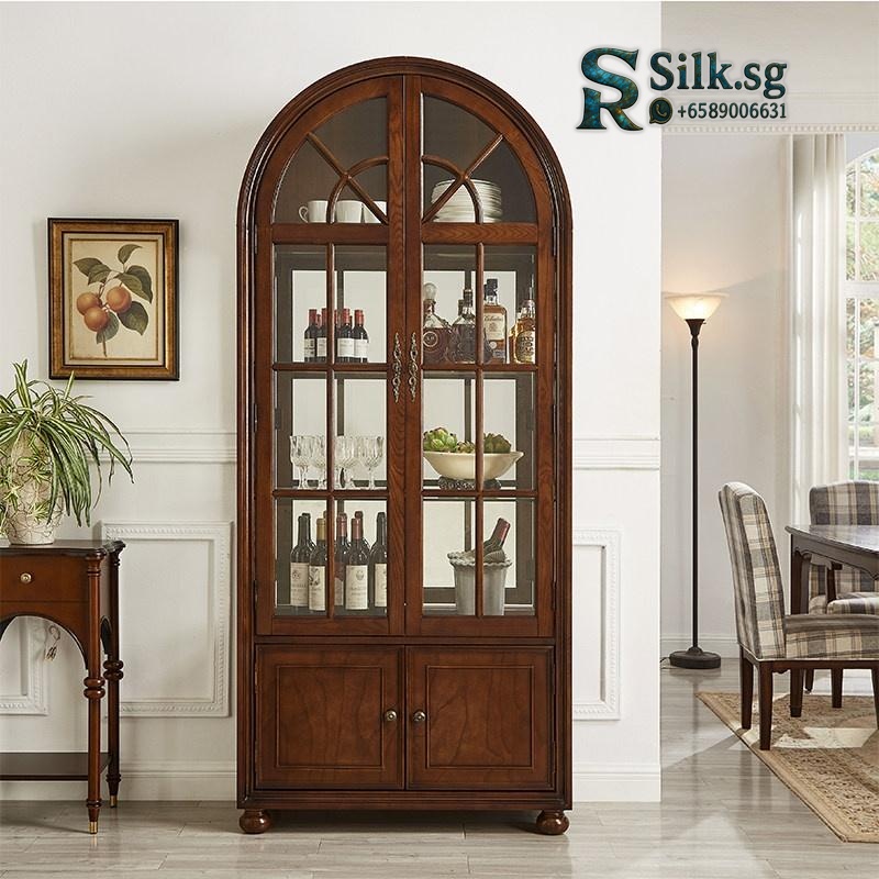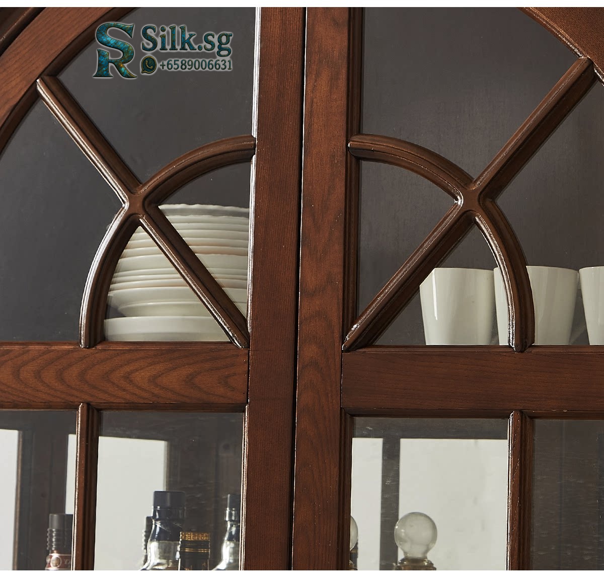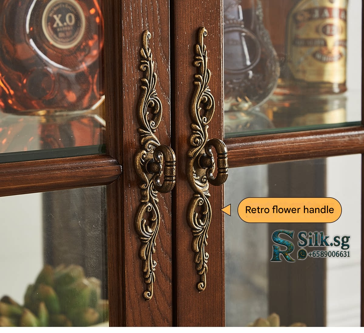 Jiang Lai Yi – European Retro Solid Wood Wine Cabinet with Glass Displ