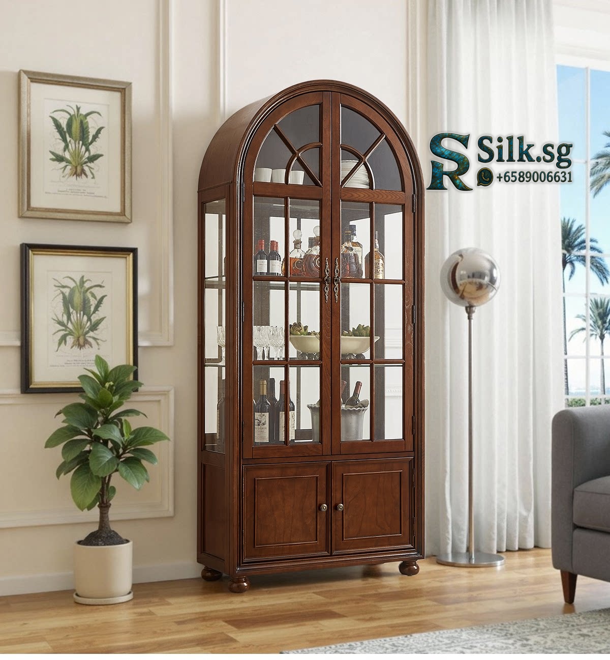 Xin Mei Ju Jia – Solid Wood Double Door Wine Display Cabinet with Adju