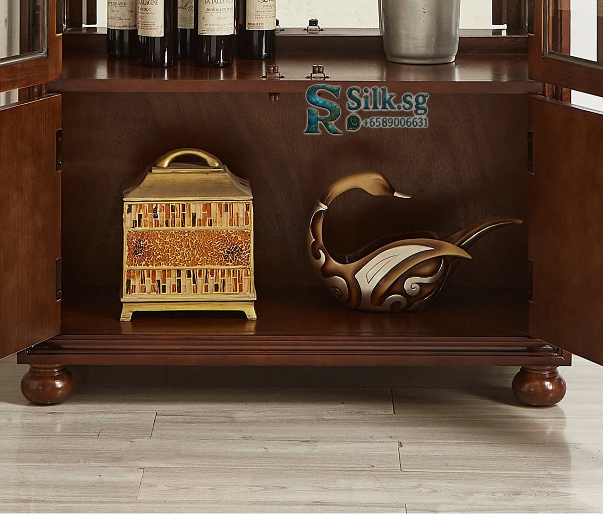 3 – European Solid Wood Wine Cabinet with Rotatable Shelves & Tempered