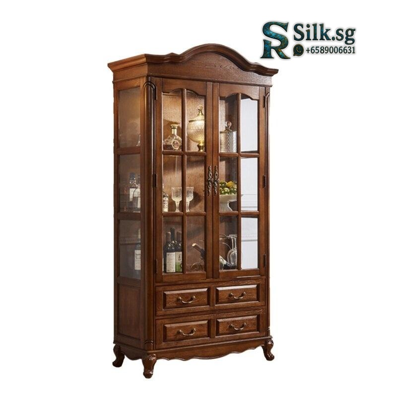 3 – European Solid Wood Wine Cabinet with Rotatable Shelves & Tempered