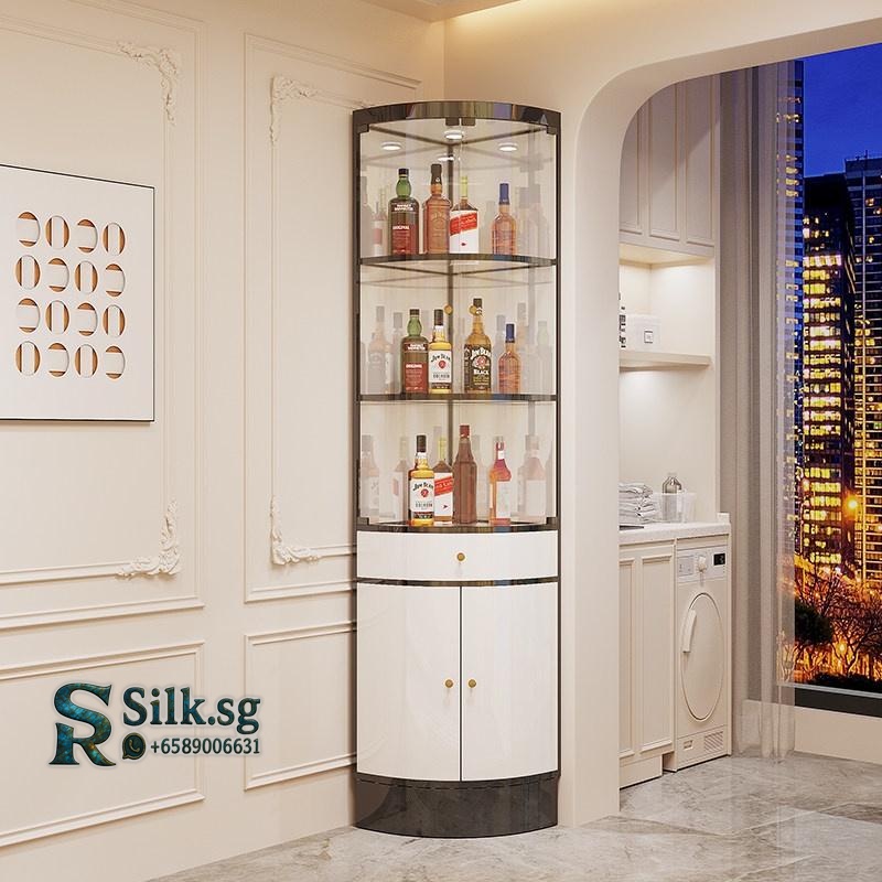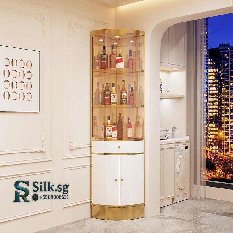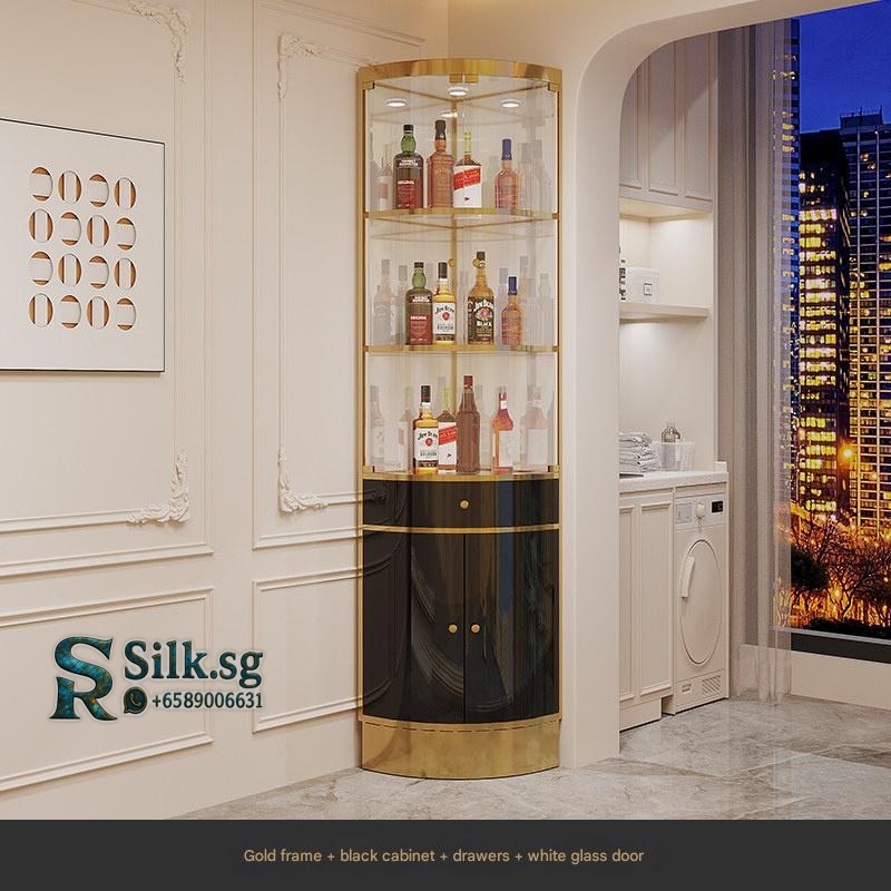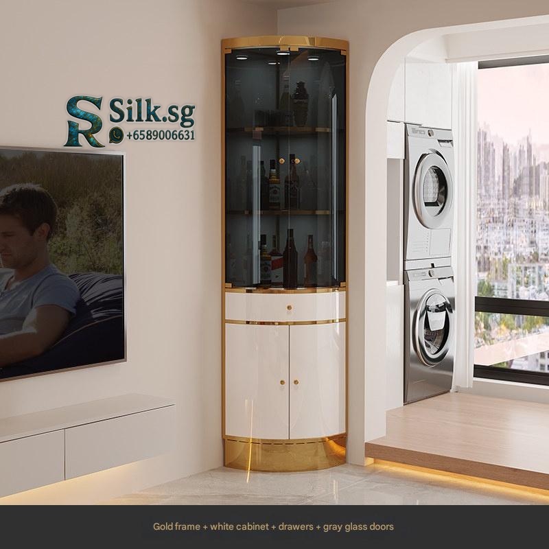 Mingxi – Light Luxury Stainless Steel Corner Wine Cabinet with Glass D