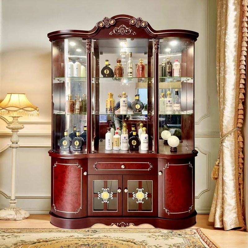 Custom European Wine Cabinet – Solid Wood Glass Display Storage Wall –