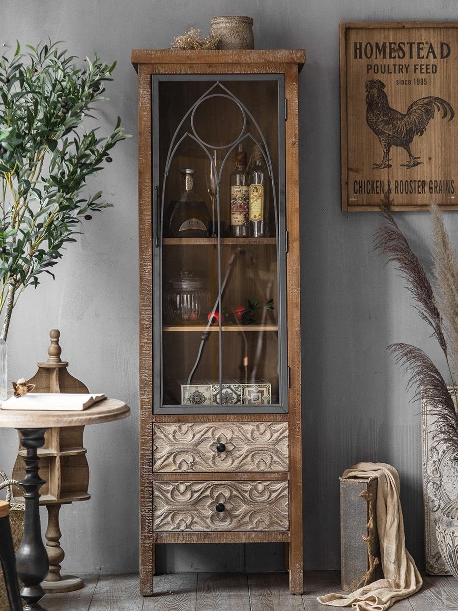 McFerran – Vintage Distressed Double Door Wine Display Cabinet with Ar