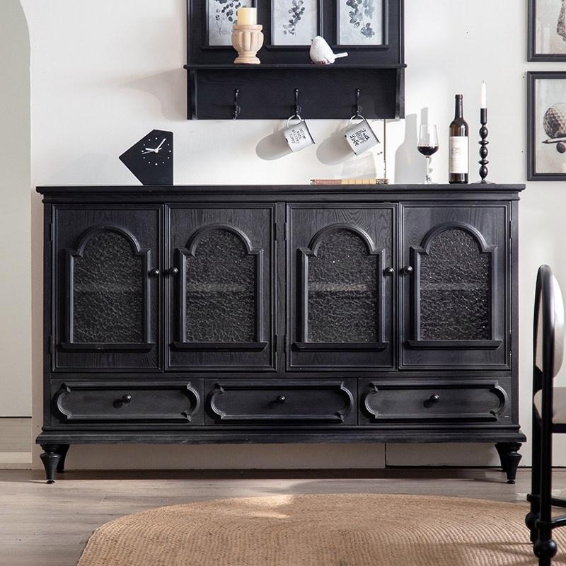 This elegant mid-century sideboard combines solid pine wood construction with a sleek glass door, offering stylish storage and a timeless retro look. Perfect for living rooms or entryways, it adds character while keeping essentials organized. Discover your new favorite piece.