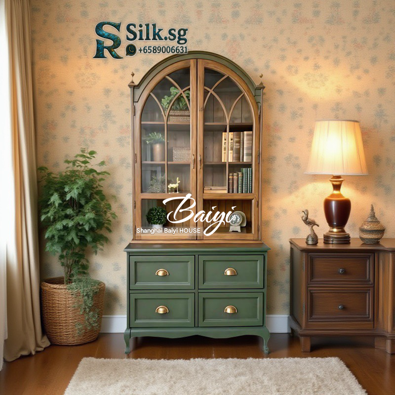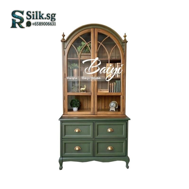 Premium French Retro Solid Wood Sideboard Wall-Mounted High Cabinet Mid-Century Wine Cabinet Living Room Glass Door Storage Cabinet for modern lifestyles. Designed for comfort, durability, and everyday use. {‘Brand’: ‘Other Brands’, ‘Model’: ‘2586’,