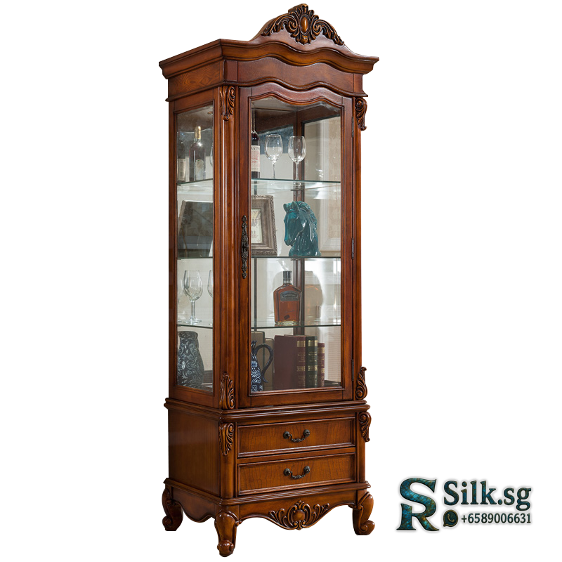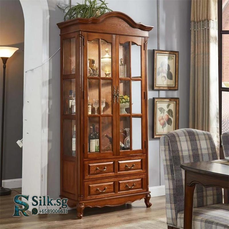 K05 – American Country Solid Wood Wine Display Cabinet with Tempered G