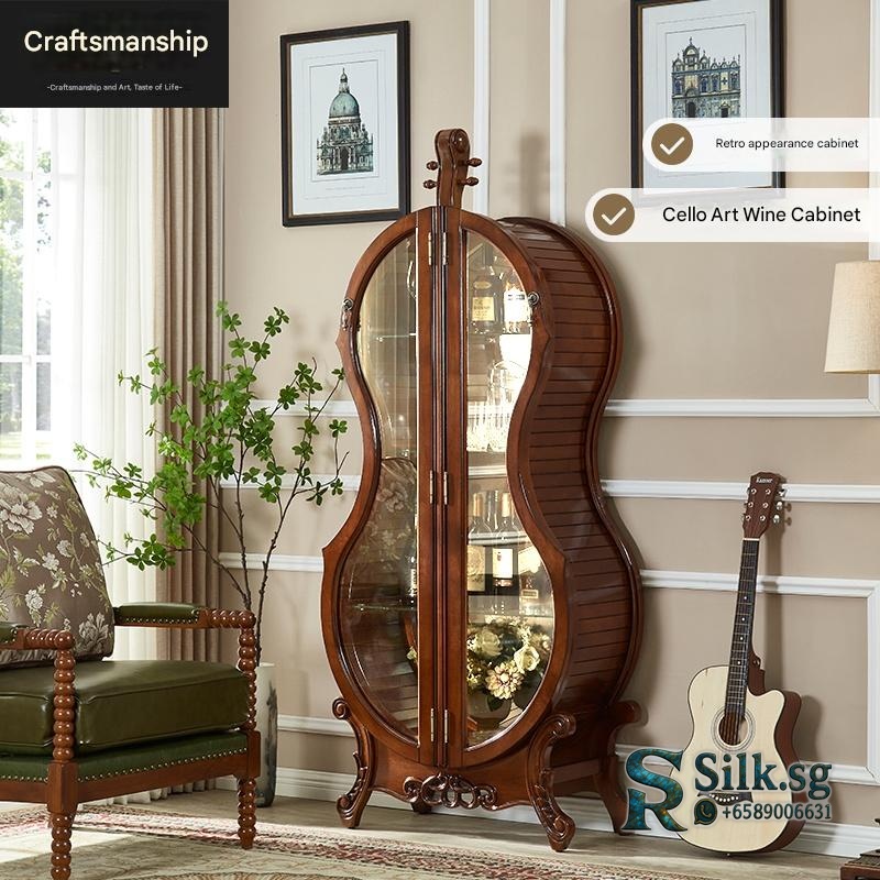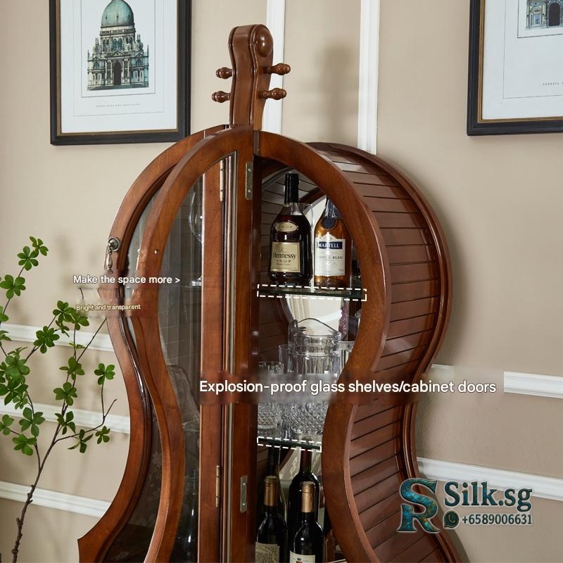 Jiang Lai Yi – American Retro Cello Wine Cabinet, Solid Wood Glass Dis