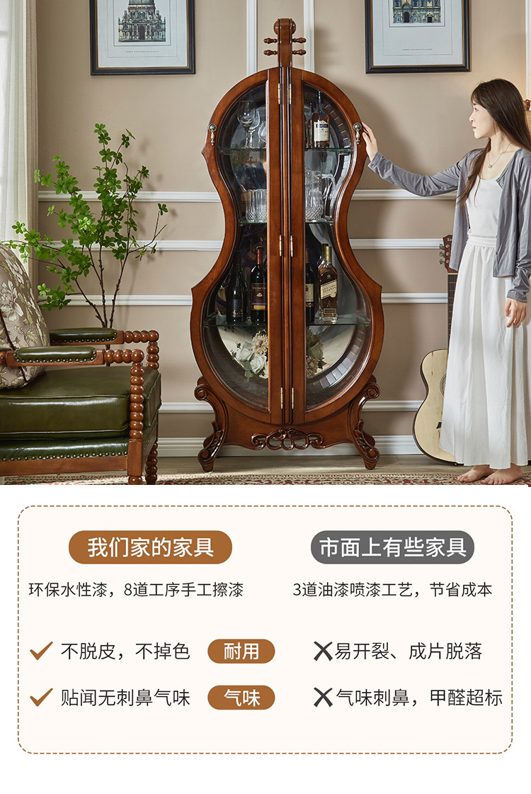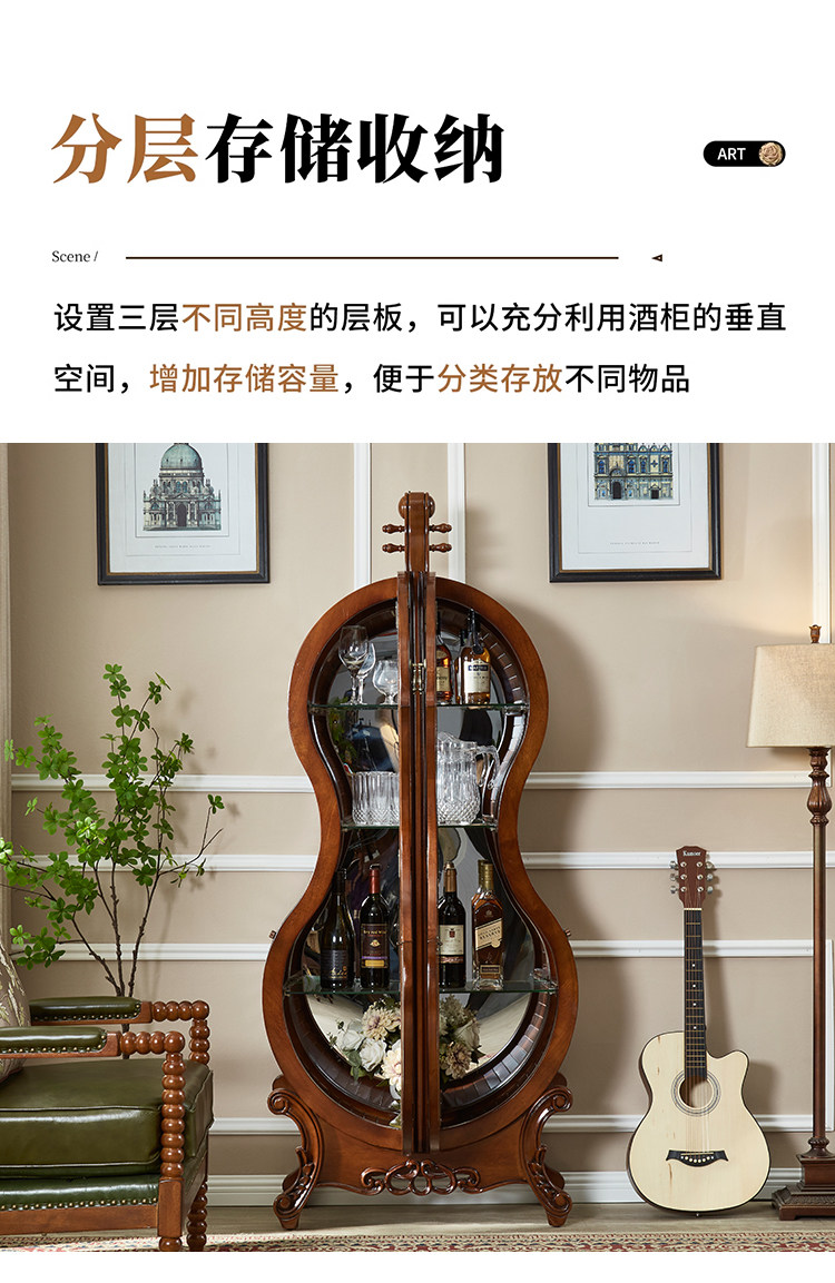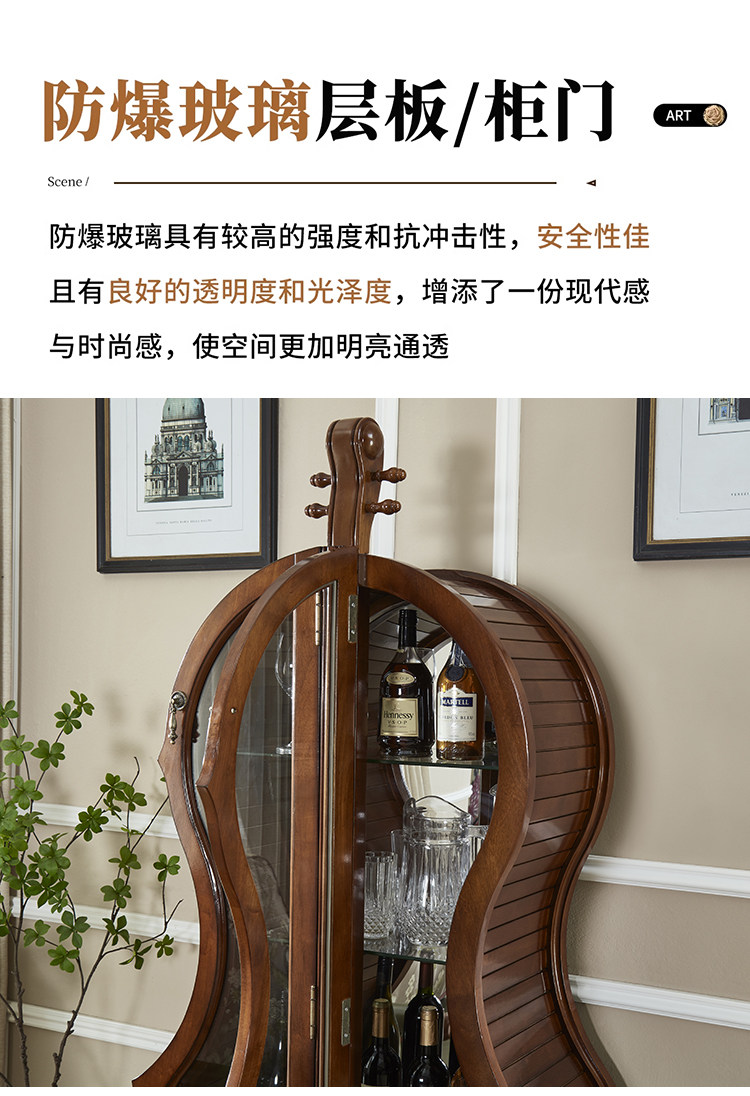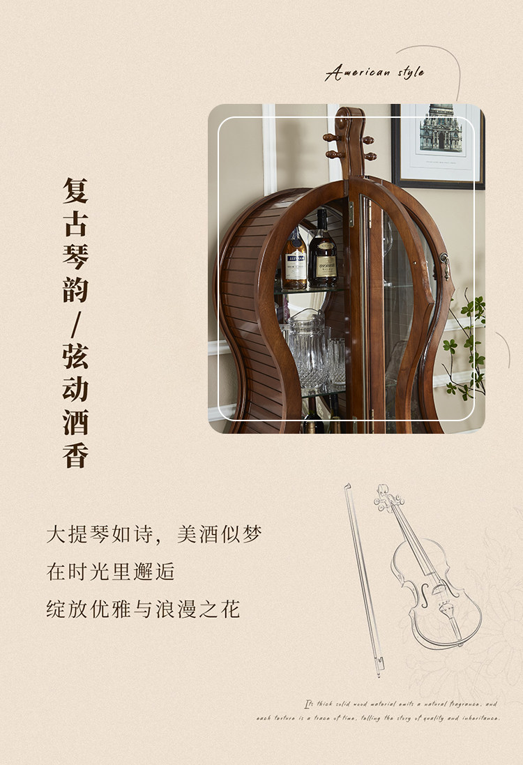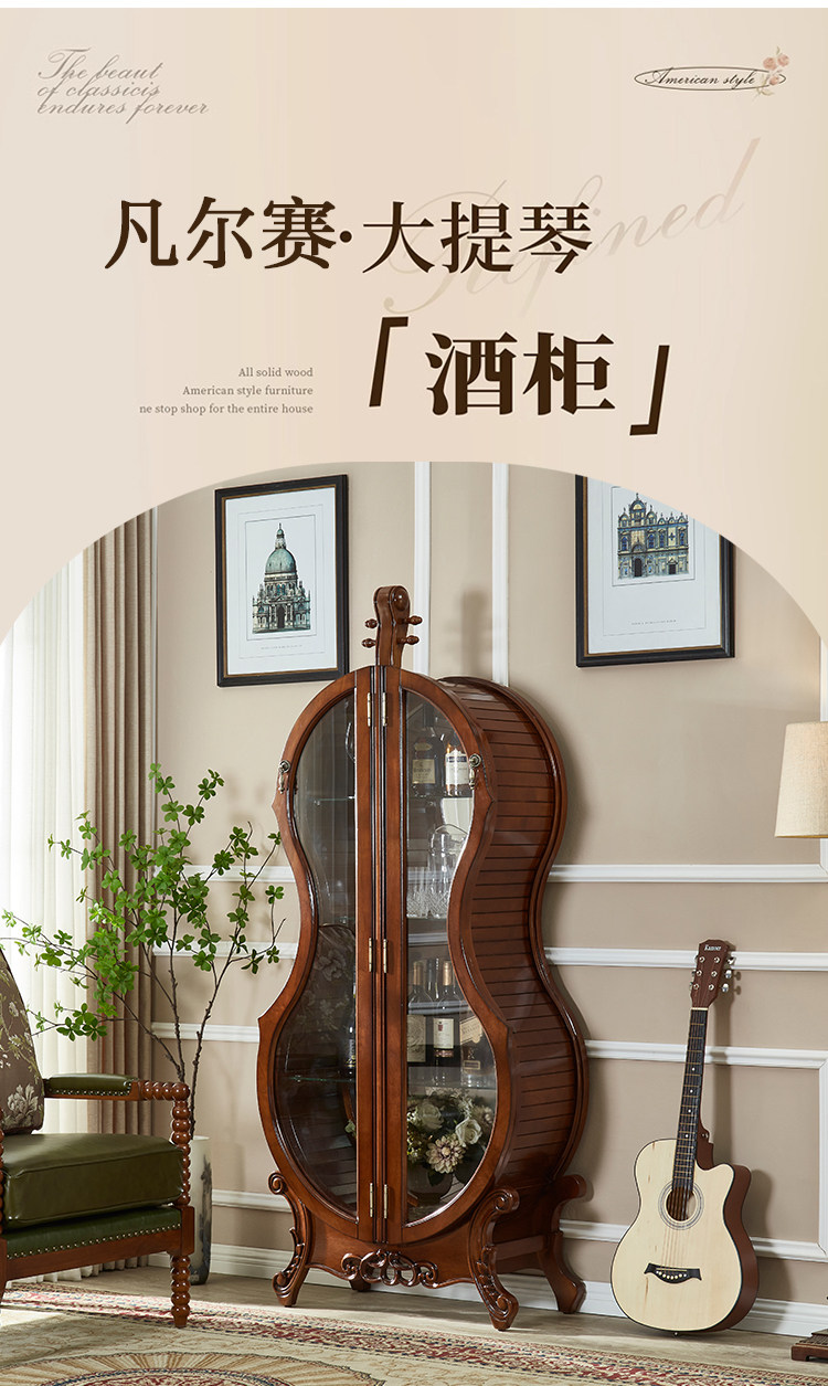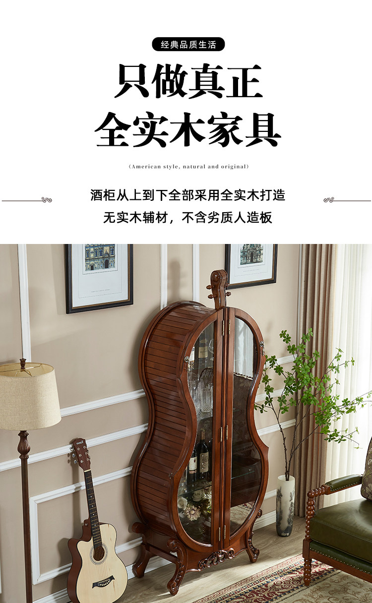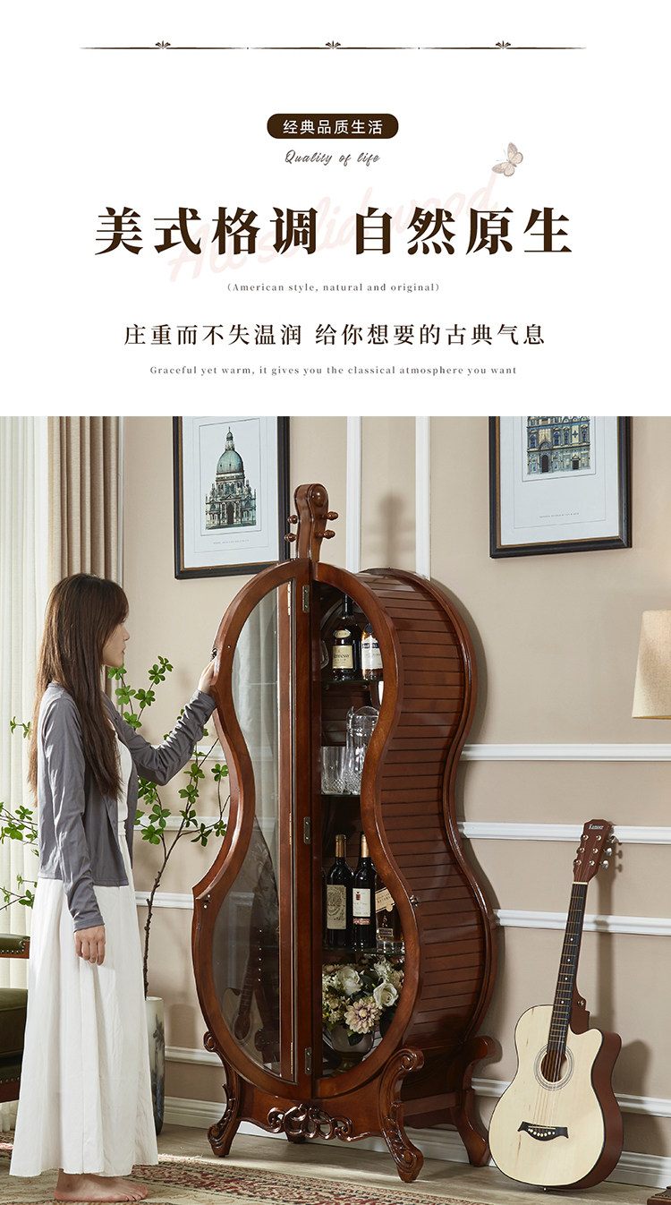 Jiang Lai Yi – American Retro Cello Wine Cabinet, Solid Wood Glass Dis