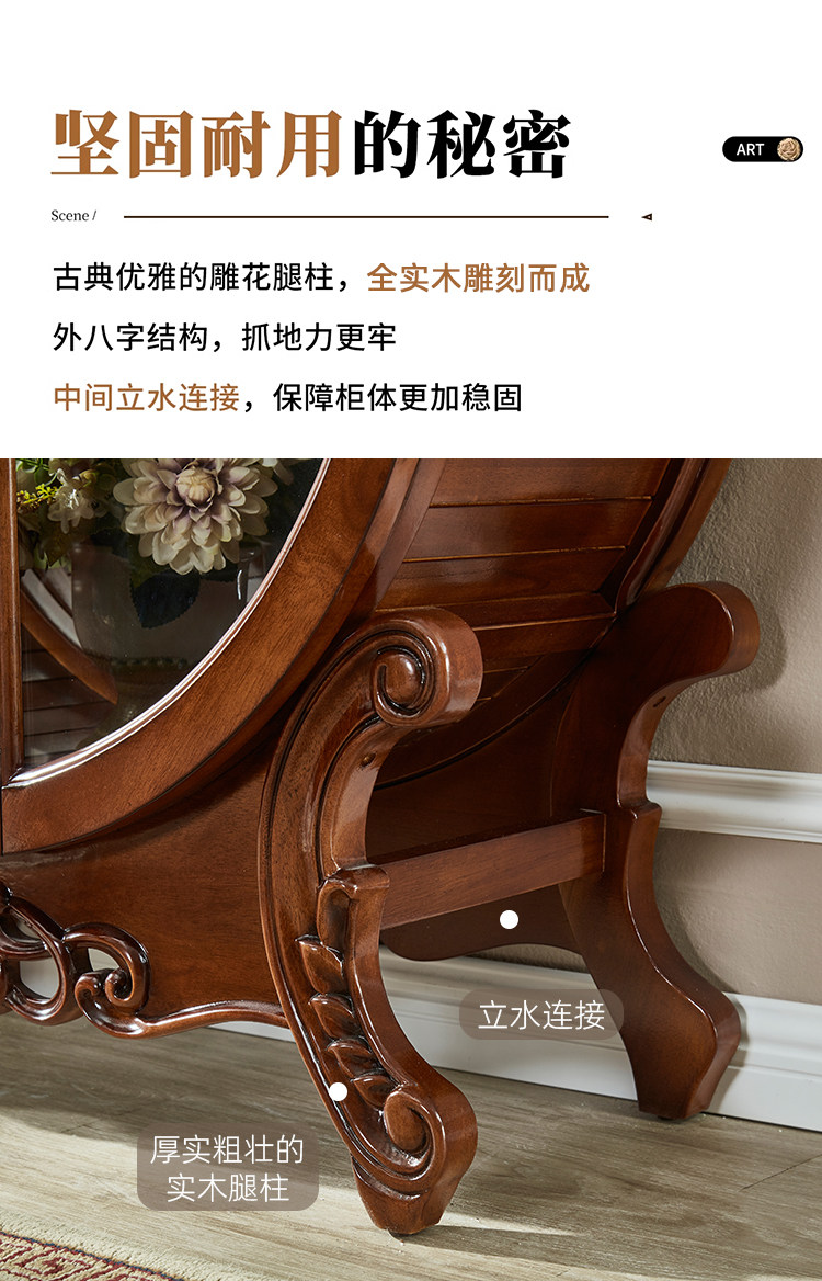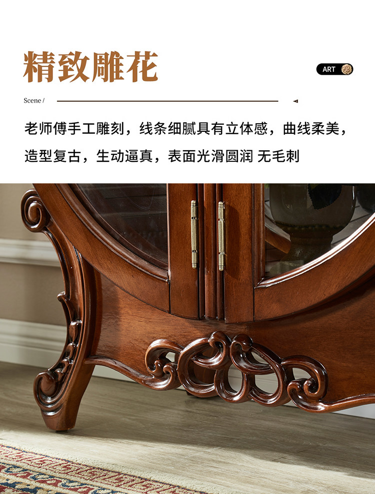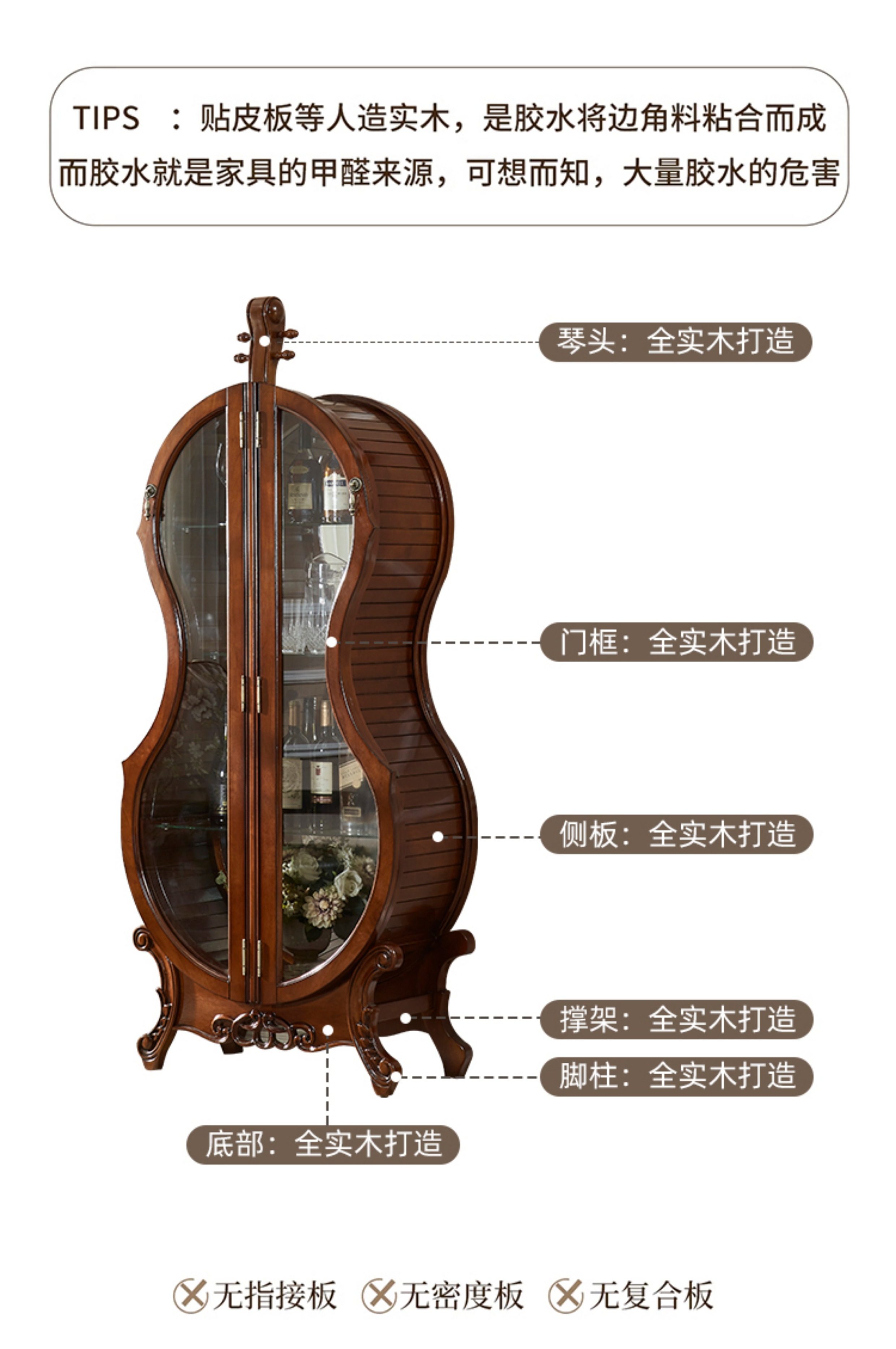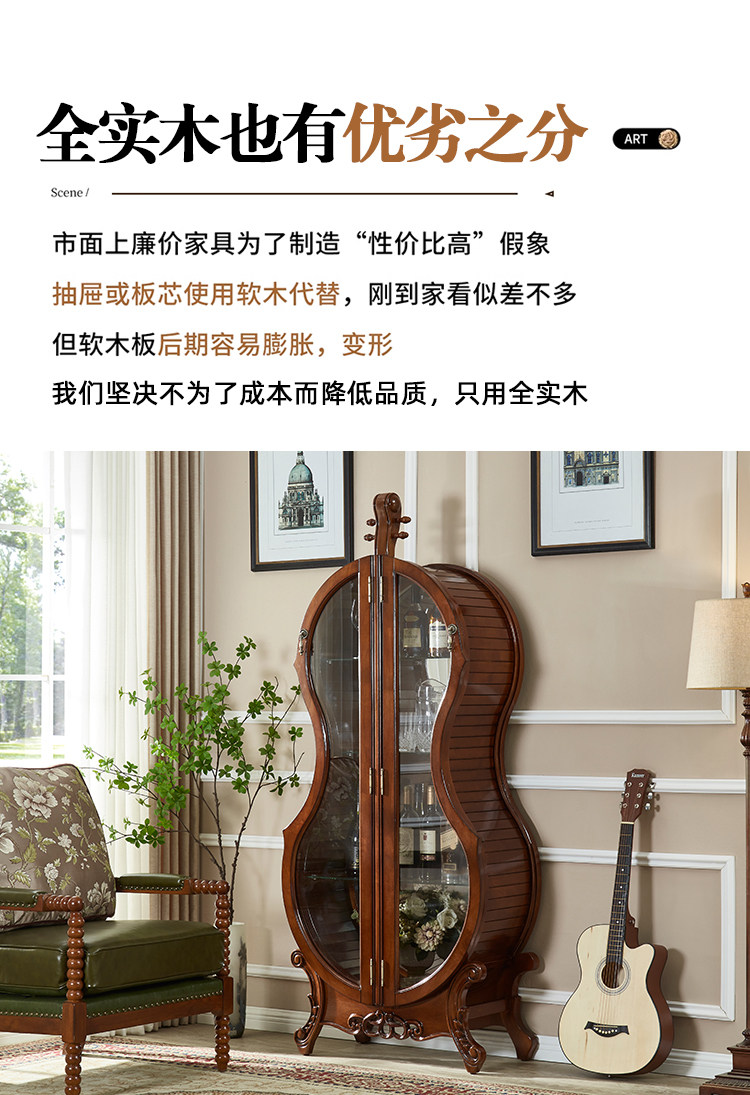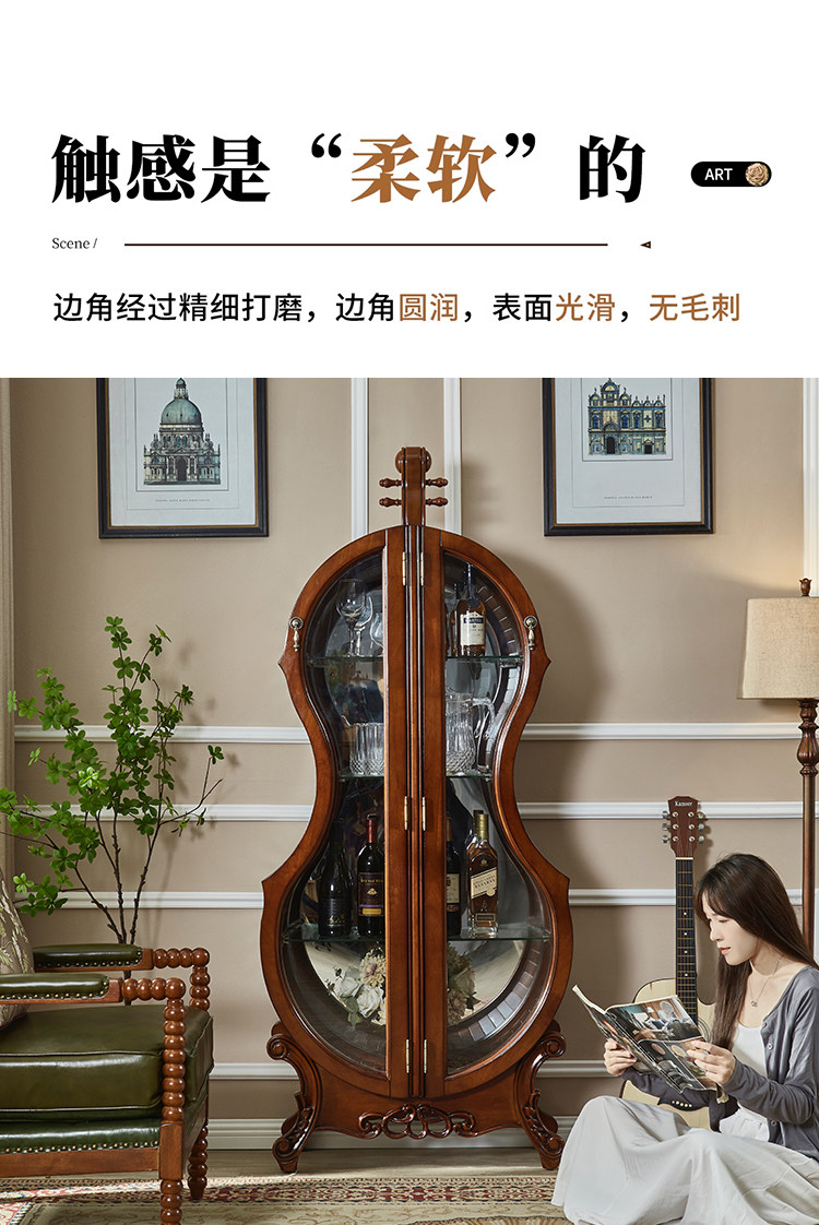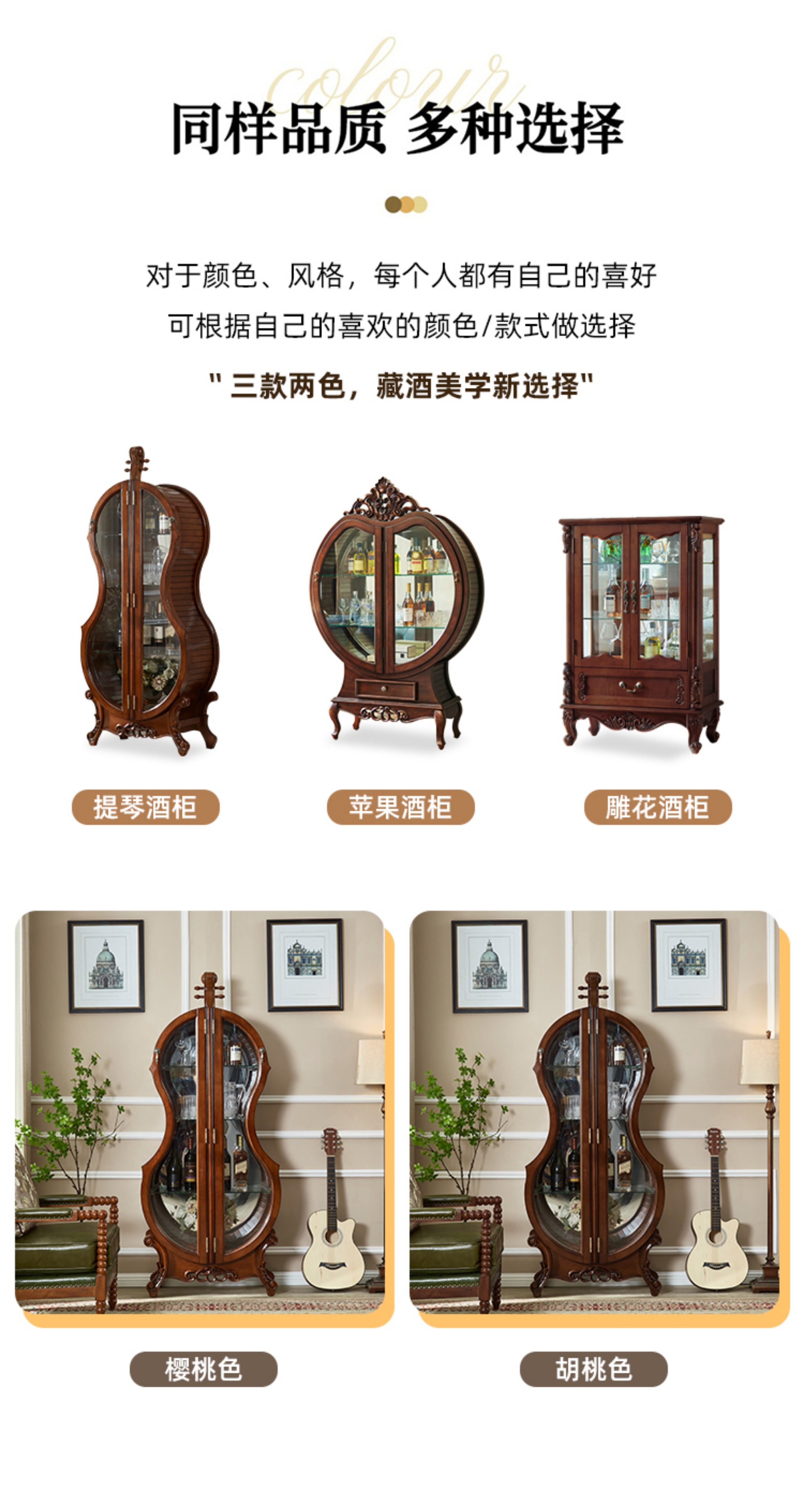Jiang Lai Yi – American Retro Cello Wine Cabinet, Solid Wood Glass Dis