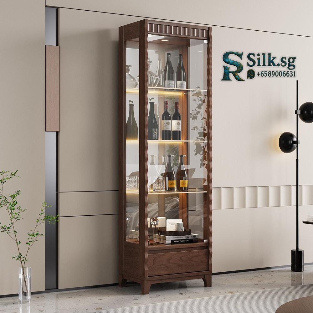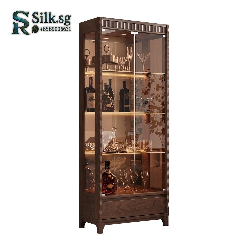 Xin Mei Ju Jia – Solid Wood Double Door Wine Display Cabinet with Adju
