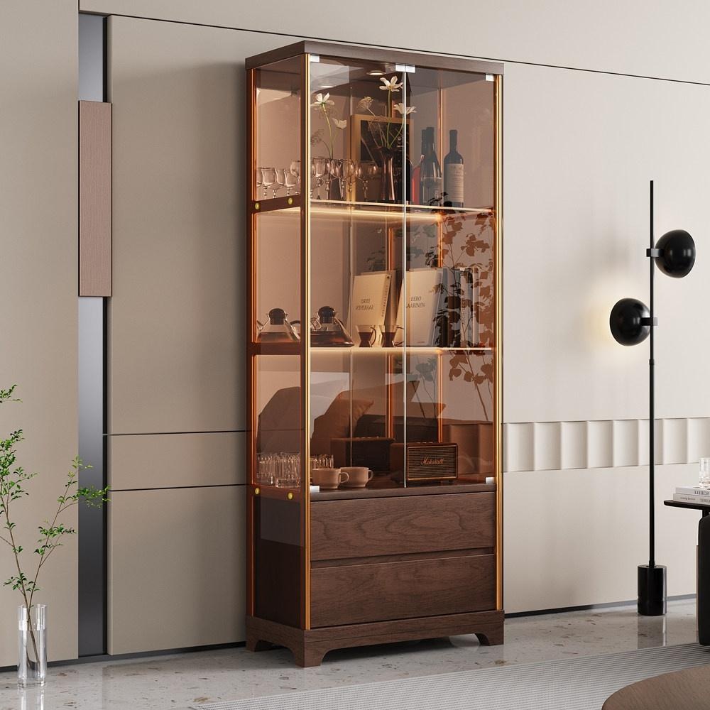 Premium New Chinese Style Solid Wood Walnut Color Wine Cabinet, Wall-Mounted Living Room Display Cabinet with Double Glass Doors and Lock, Minimalist Decorative Cabinet for modern lifestyles. Designed for comfort, durability, and everyday use. {‘Styl