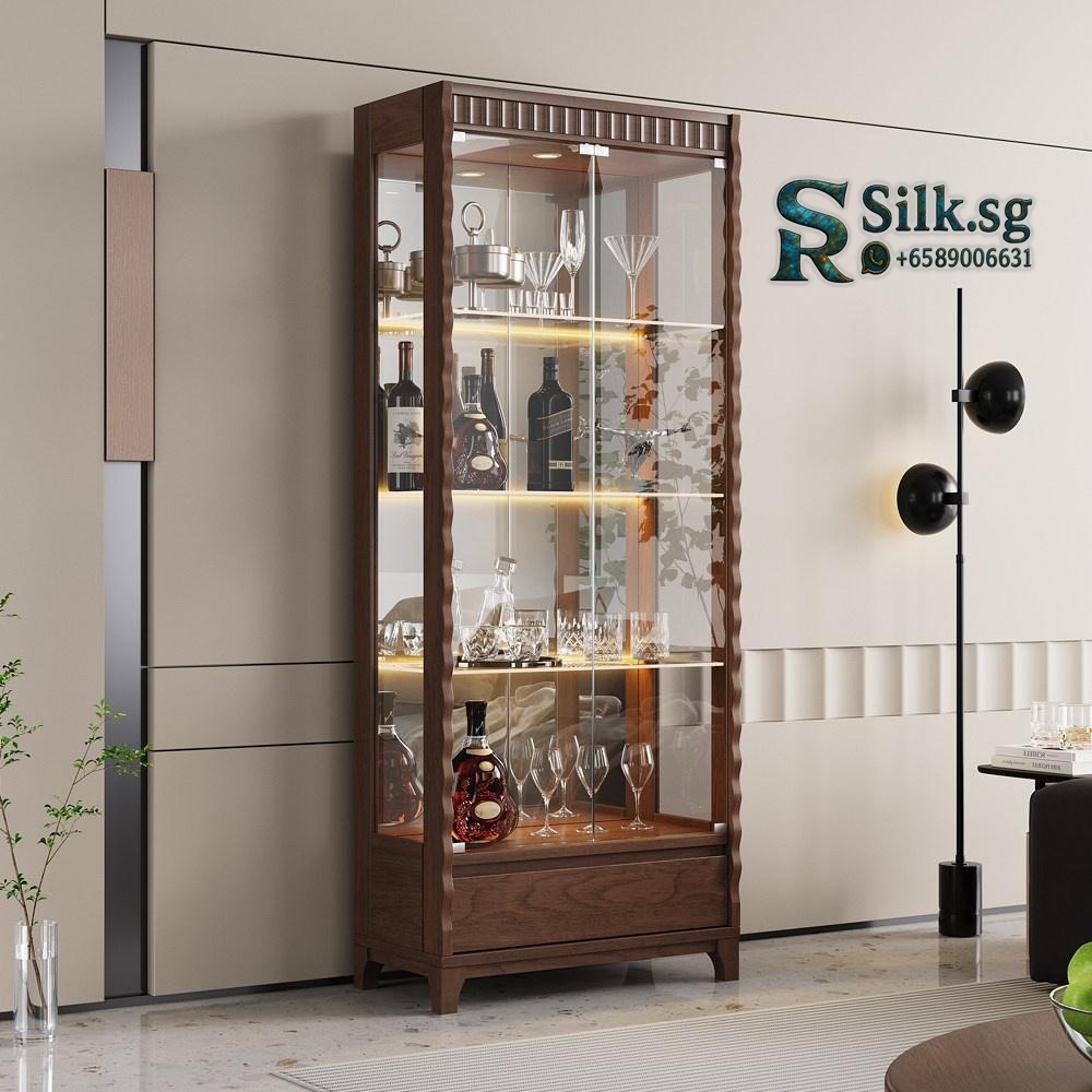 3 – European Solid Wood Wine Cabinet with Rotatable Shelves & Tempered