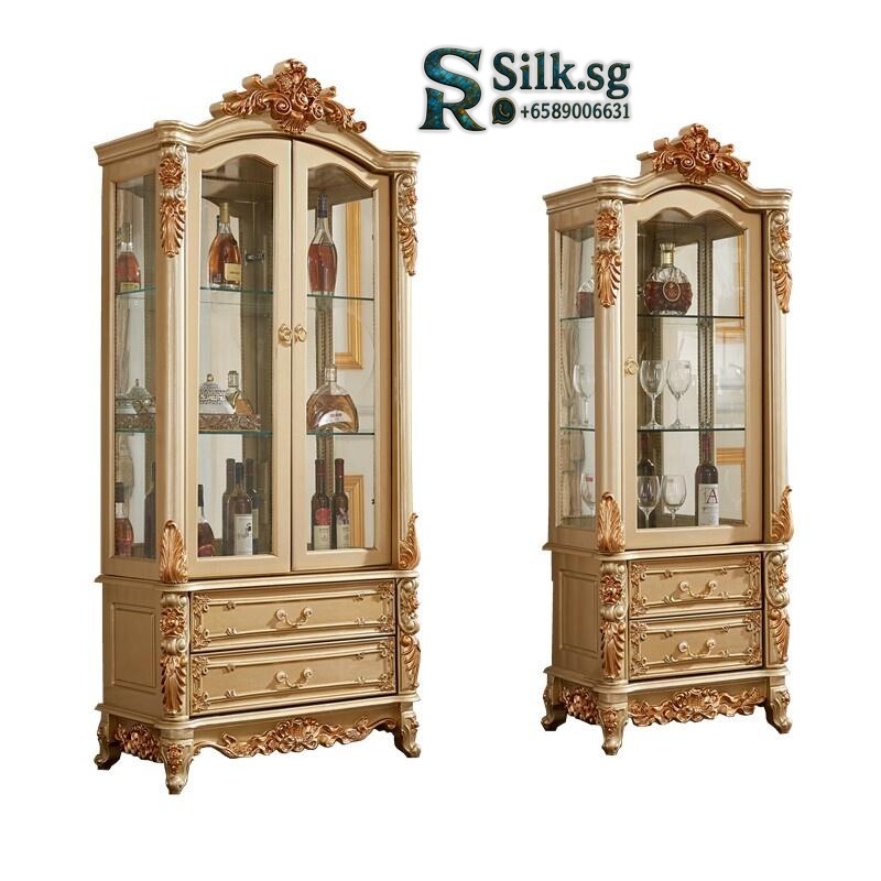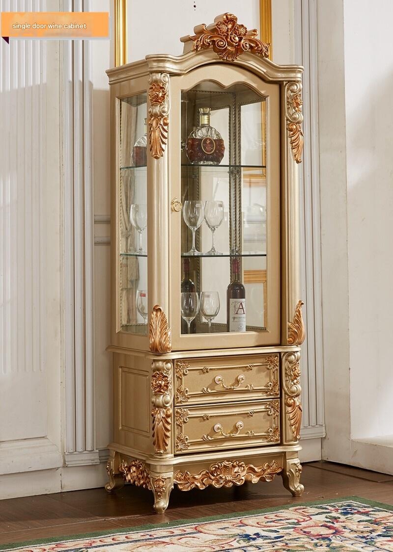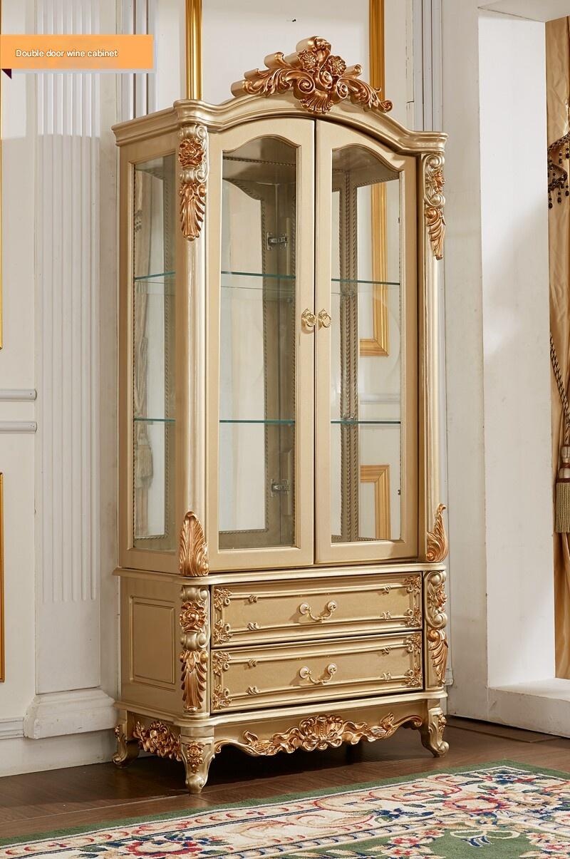 Premium European Style Solid Wood Double Door Wine Cabinet Champagne Color High-End Living Room TV Cabinet Sideboard Simple European Carved Single Door Glass Wine Cabinet for modern lifestyles. Designed for comfort, durability, and everyday use. {‘Br