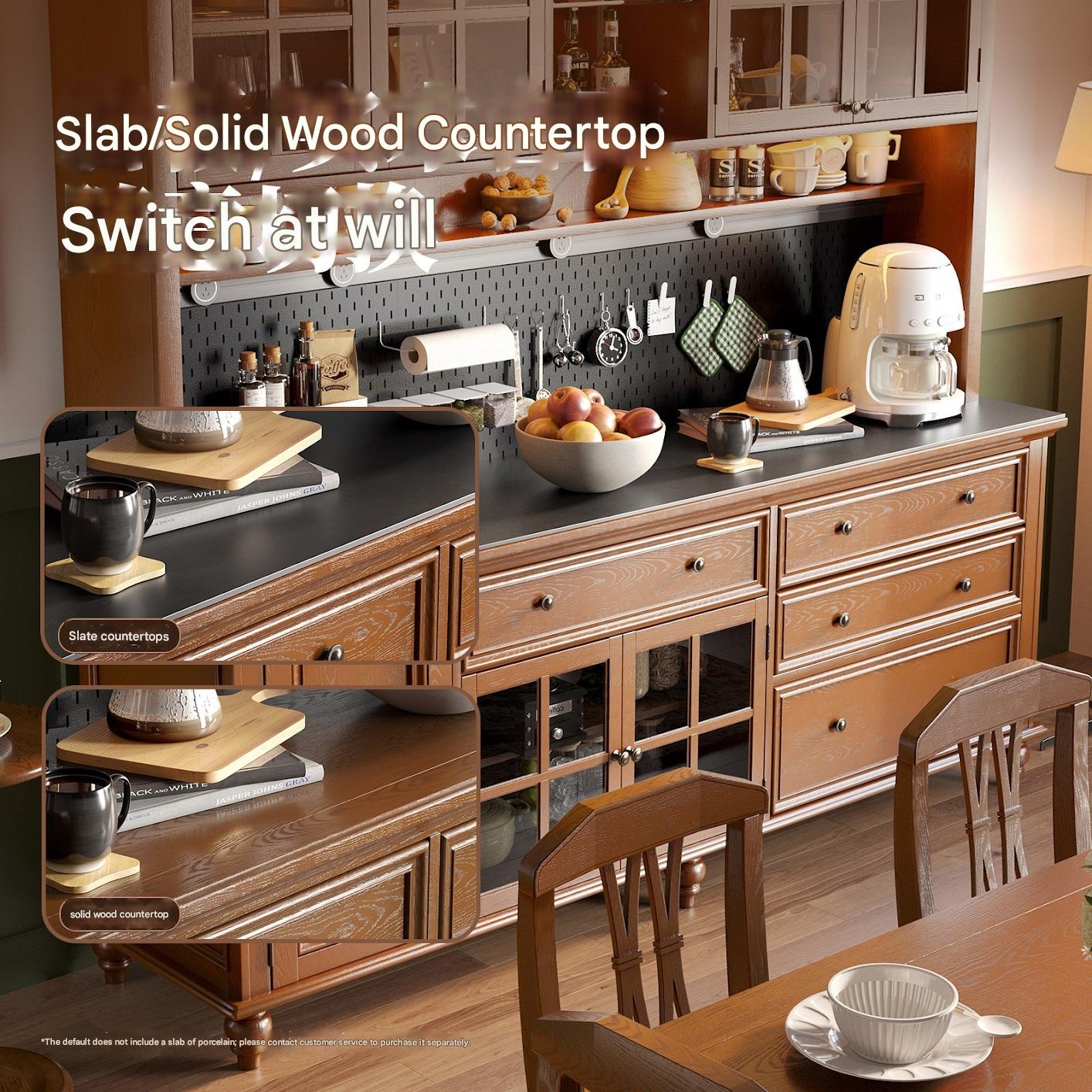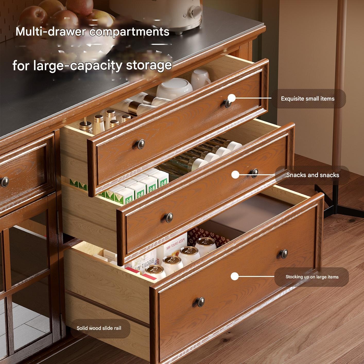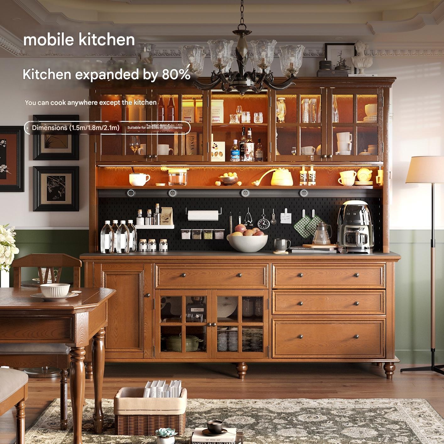 Weihang – Retro Solid Wood Side Cabinet with Storage, Movable Tea Wine