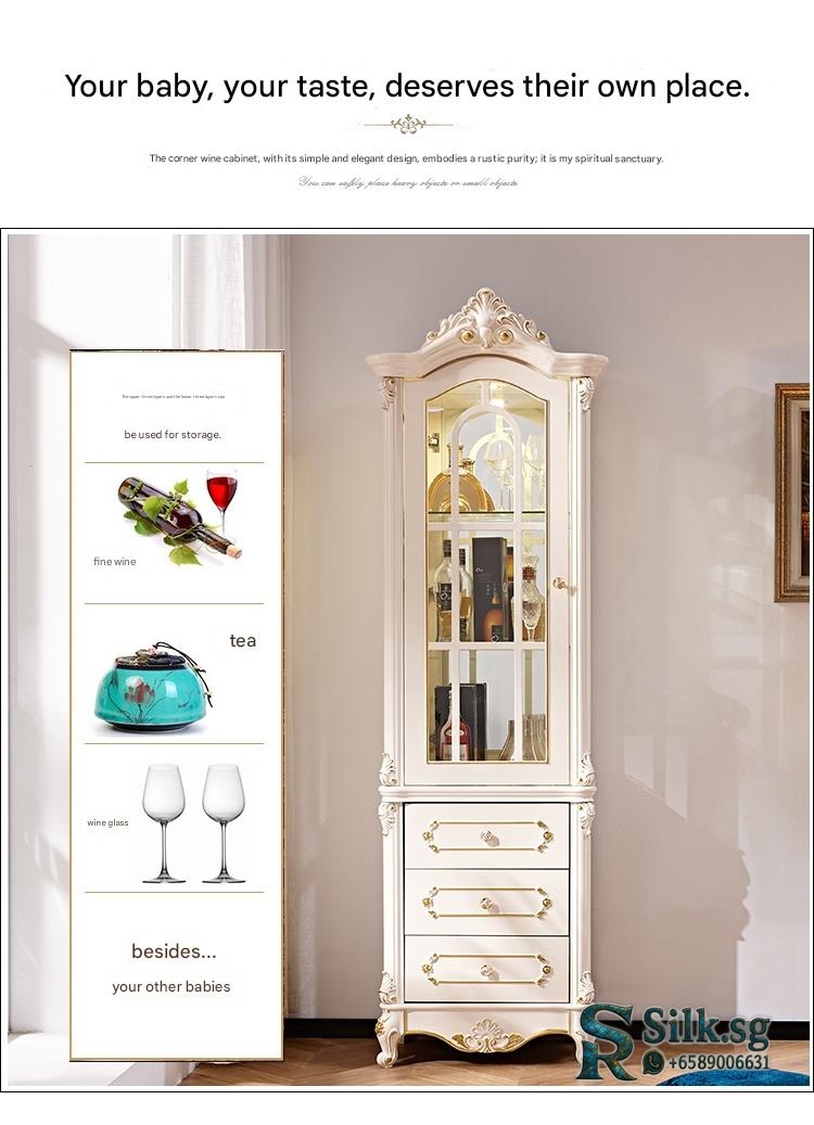 Premium European Style Single Door Wine Cabinet, Wall-Mounted Living Room Display Cabinet, Decorative Cabinet, French Luxury Carved Sideboard, White Glass for modern lifestyles. Designed for comfort, durability, and everyday use. {‘Brand’: ‘Shunwei Y