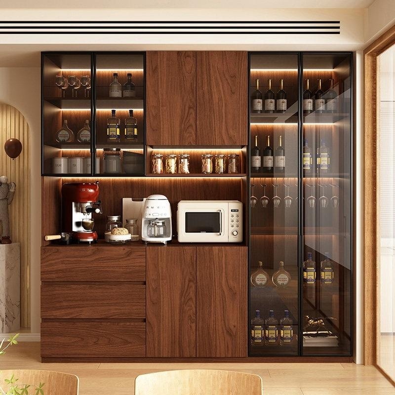 Luxury Oak Wine Cabinet – European Carved Glass Door Wall – Mounted TV