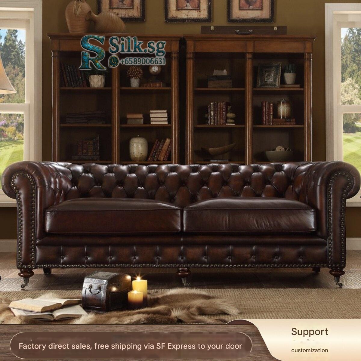 Premium American Retro Full-Grain Leather Distressed Tufted Leather Sofa Oil Wax Leather Craft European Style Living Room Solid Wood Single Double Triple Seater for modern lifestyles. Designed for comfort, durability, and everyday use. {‘Style’: ‘Ret
