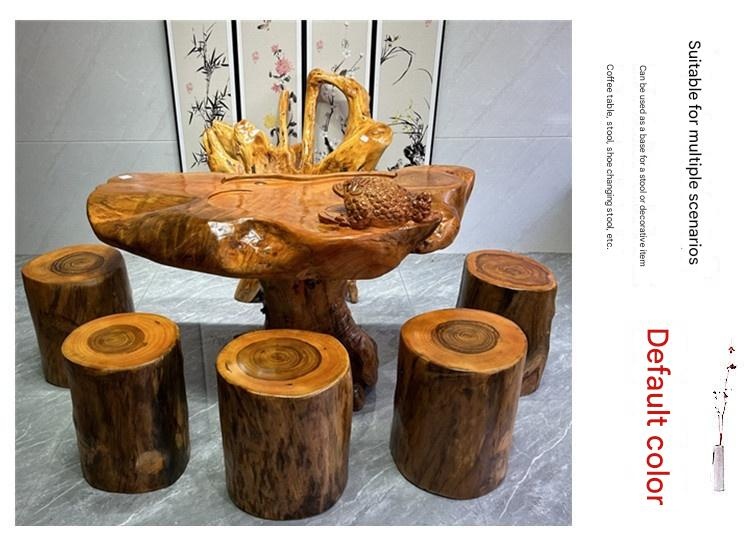 Camphor Wood Tea Tab – Camphor Wood Tea Table with Natural Root Carving Large Board Lamp Stan