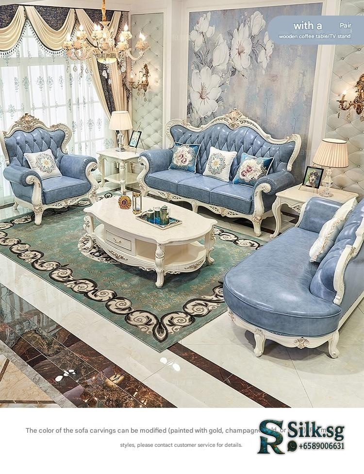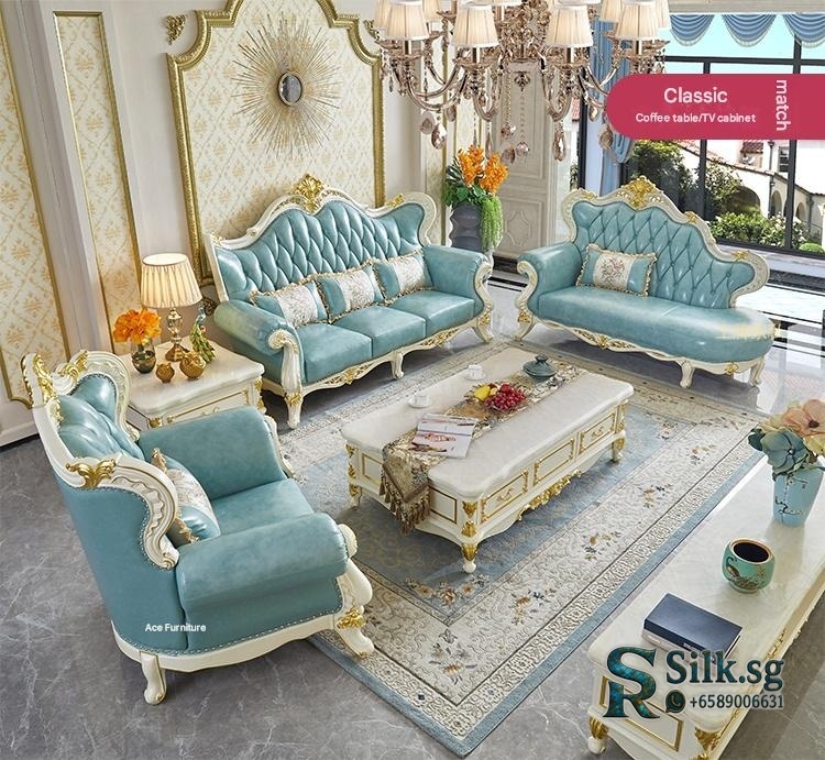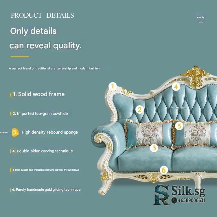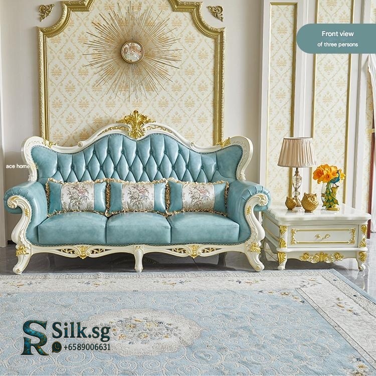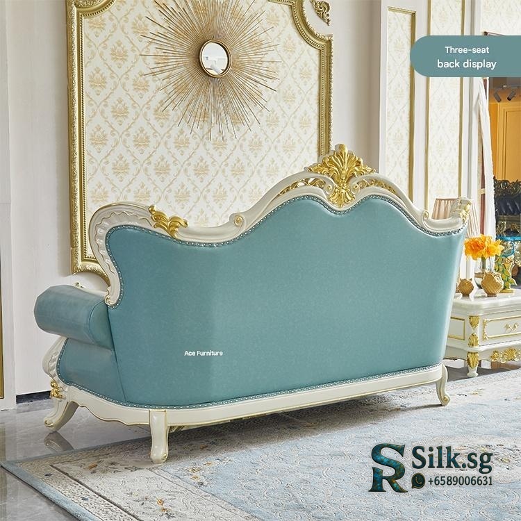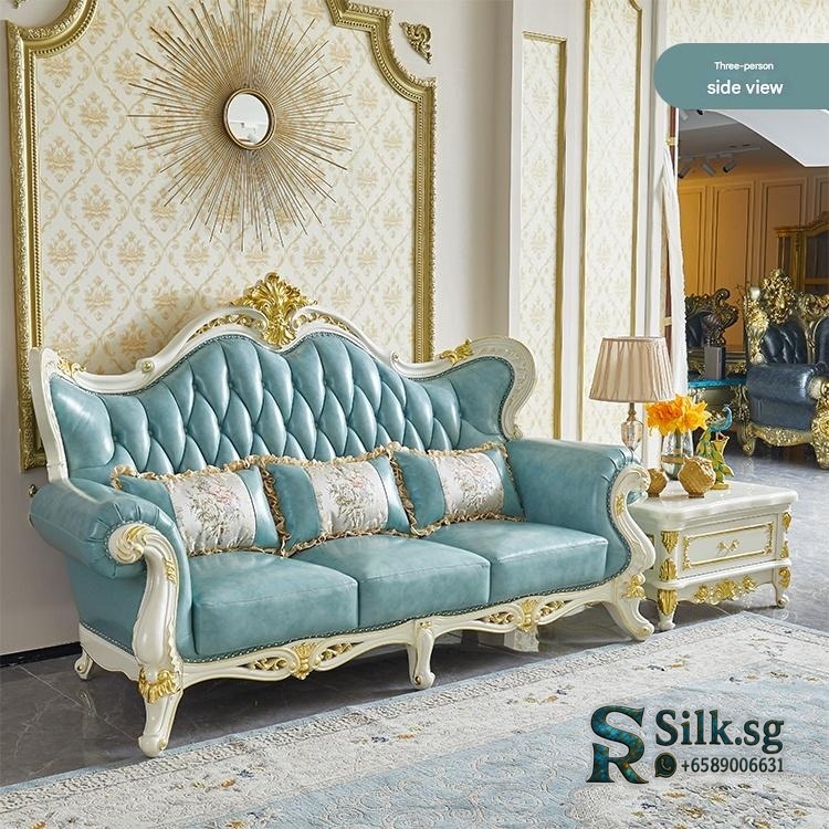 Experience timeless elegance with this European-style sofa set, featuring genuine top-grain leather and hand-carved solid oak. Perfect for creating a luxurious living room, its firm, plush cushions offer lasting comfort and sophisticated style. Transform your villa into a statement of refined taste.