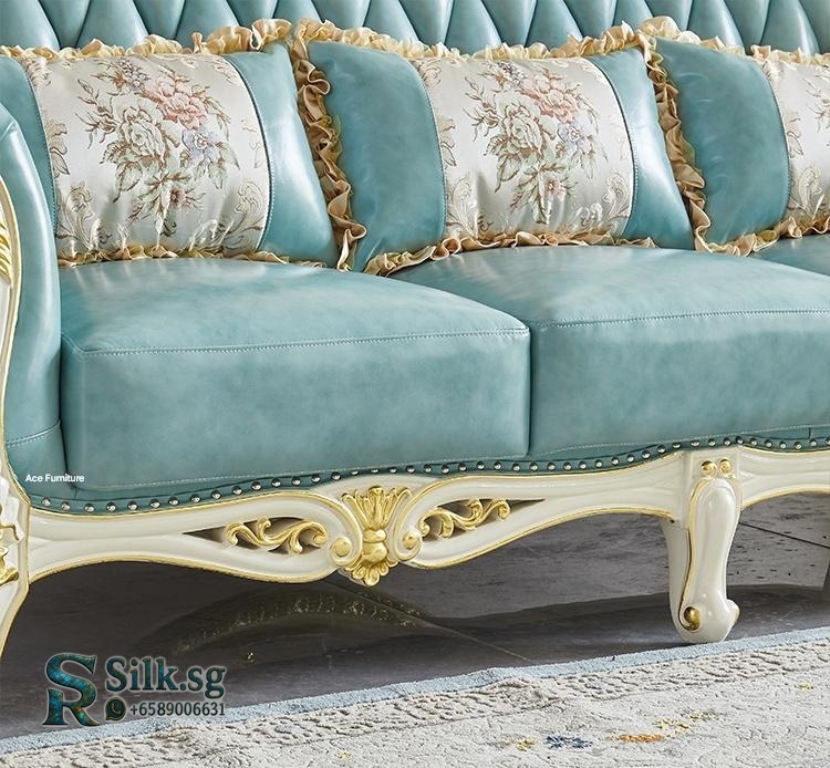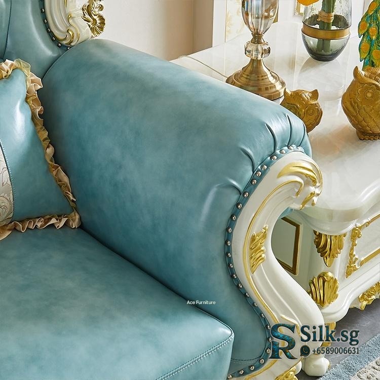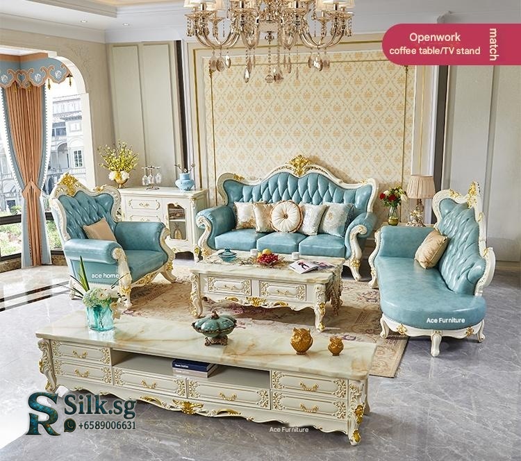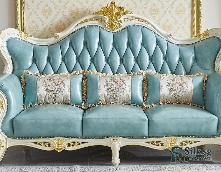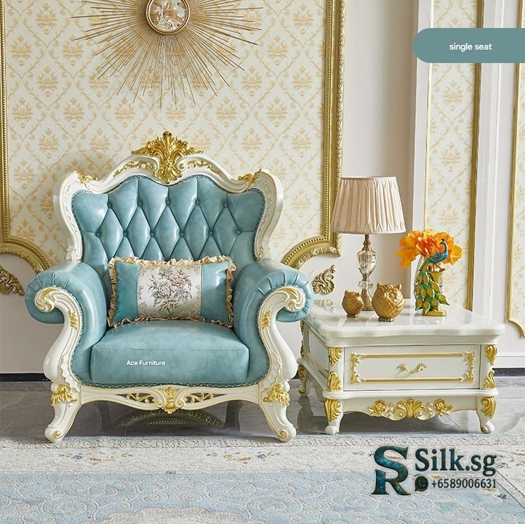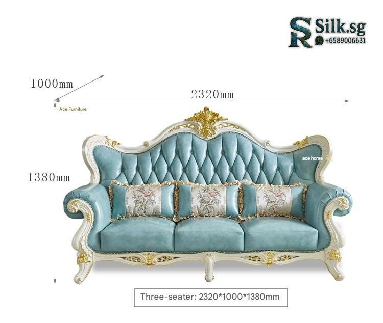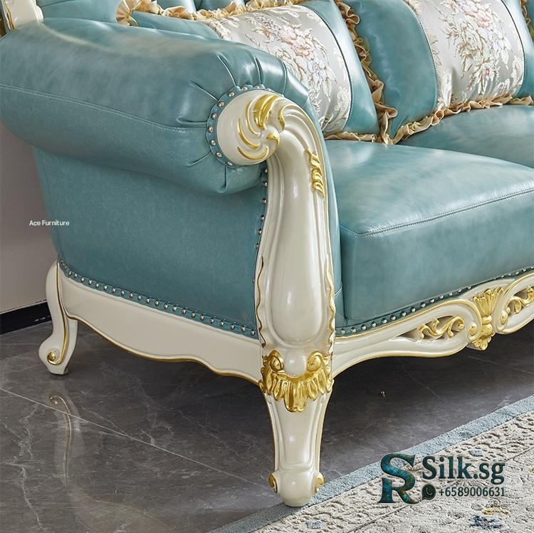 Experience timeless elegance with this European-style sofa set, featuring genuine top-grain leather and hand-carved solid oak. Perfect for creating a luxurious living room, its firm, plush cushions offer lasting comfort and sophisticated style. Transform your villa into a statement of refined taste.