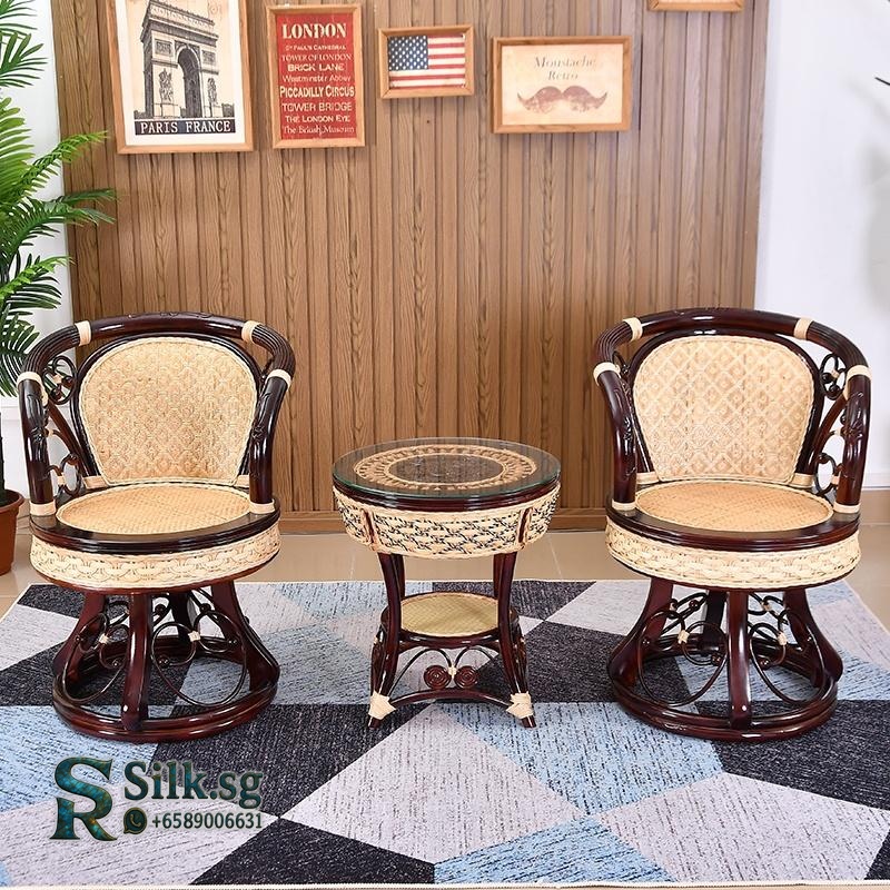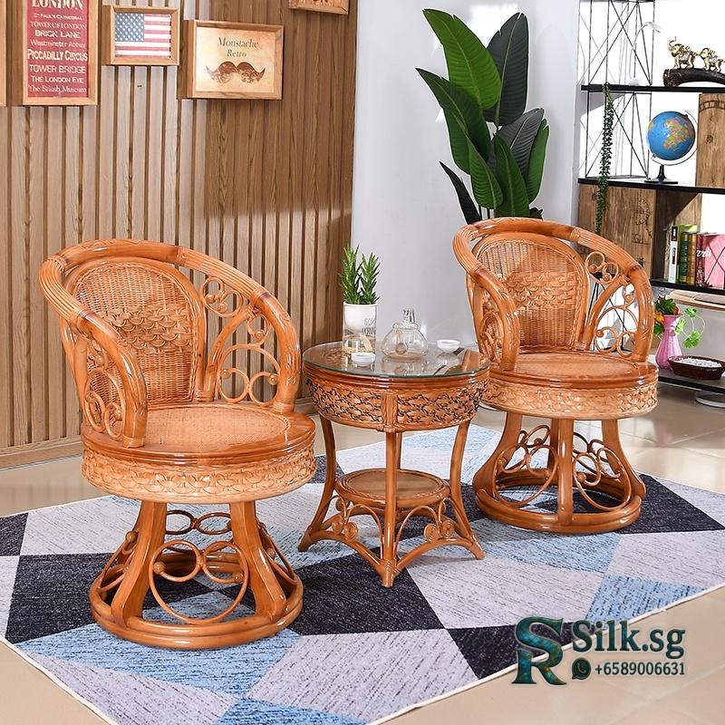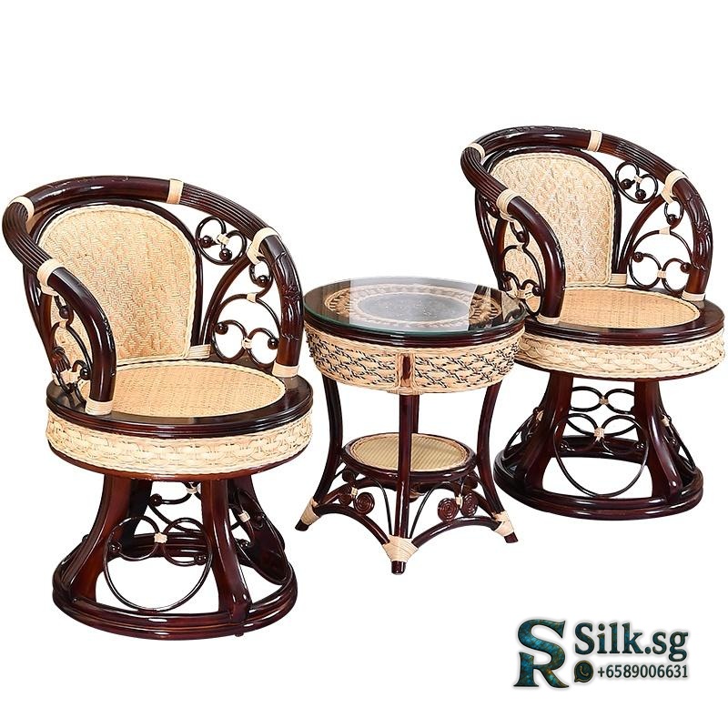 Enjoy effortless relaxation with this swivel rattan chair set. Its smooth rotation and comfortable cushioning make it perfect for your balcony or reading nook. Crafted from genuine plant rattan, this durable set adds natural charm to any space. Create your cozy retreat today.
