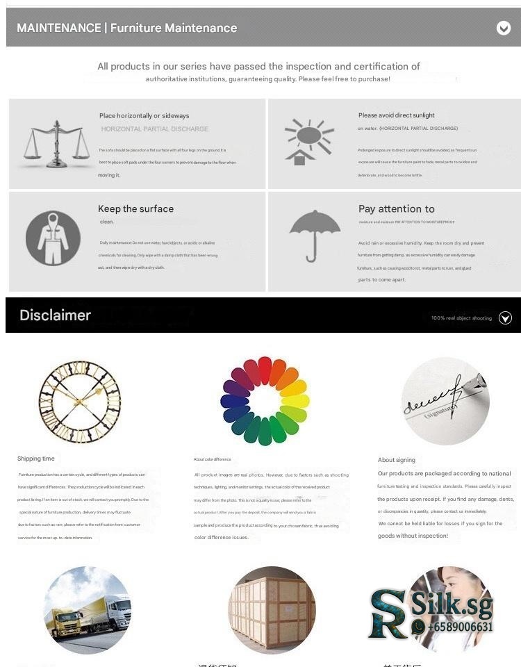 | Model | Chaise: 180×90×91 cm, Coffee Table: 120×80×45 cm, Double Seat: 180×100×110 cm, Quad Seat: 240×100×110 cm, Single Seat: 80×90×105 cm, TV Stand: 200×45×60 cm, Triple Seat: 220×100×110 cm |